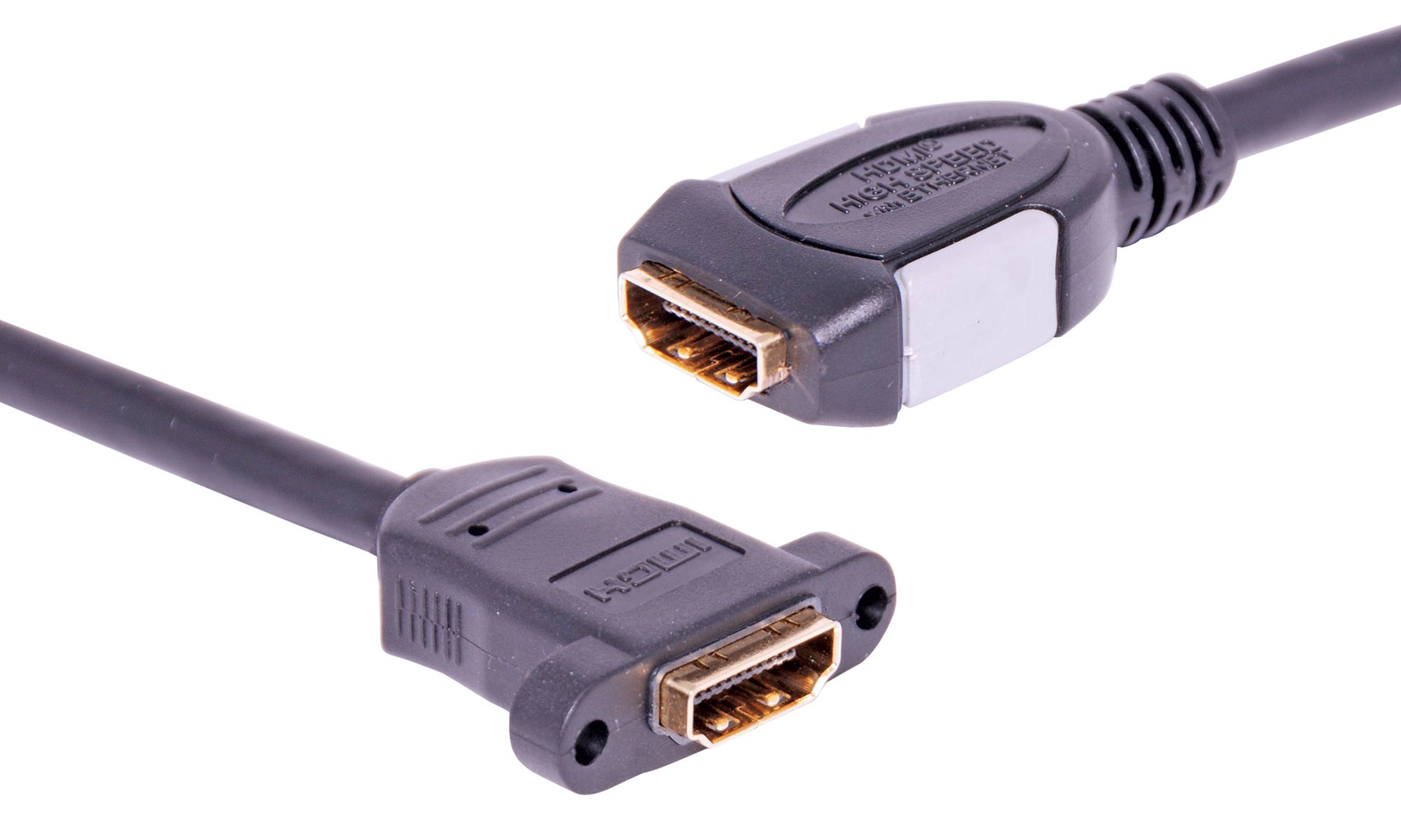 HDMI® socket to socket wallplate fly lead (Ultra High Speed HDMI Cable). Fitted with screw mount recesses for attaching to custom AV wallplates. HDMI® certified. Supports 8K resolutions at 60Hz. Suitable for use with 1.4, 2.0 and 2.1 HDMI® compliant equipment.