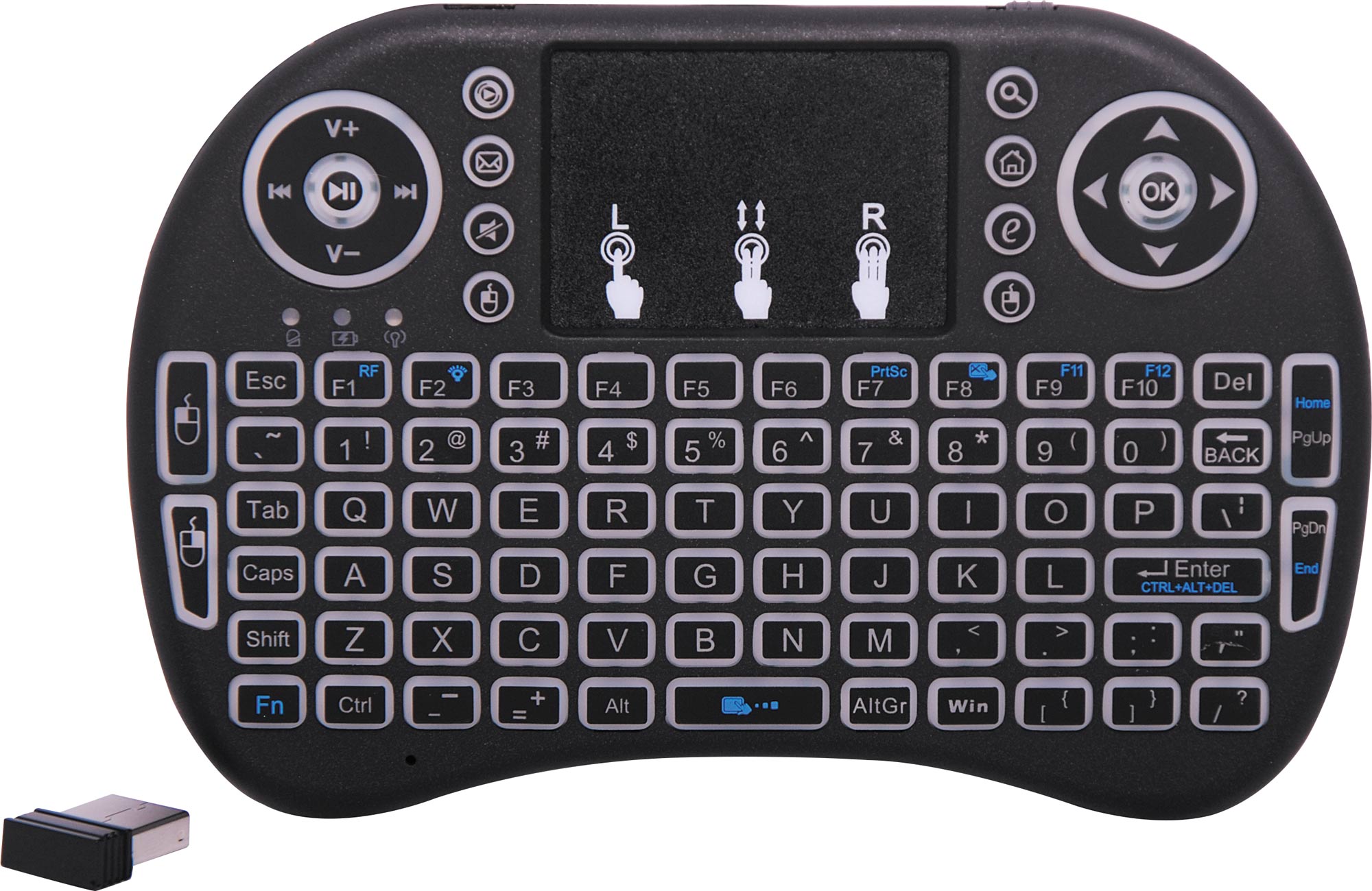 This compact backlit media centre keyboard is the perfect companion for your media streaming box, Raspberry Pi, game console or home theatre PC. Includes trackpad and media control buttons. Includes USB rechargable lithium battery. 147x98x19mm.