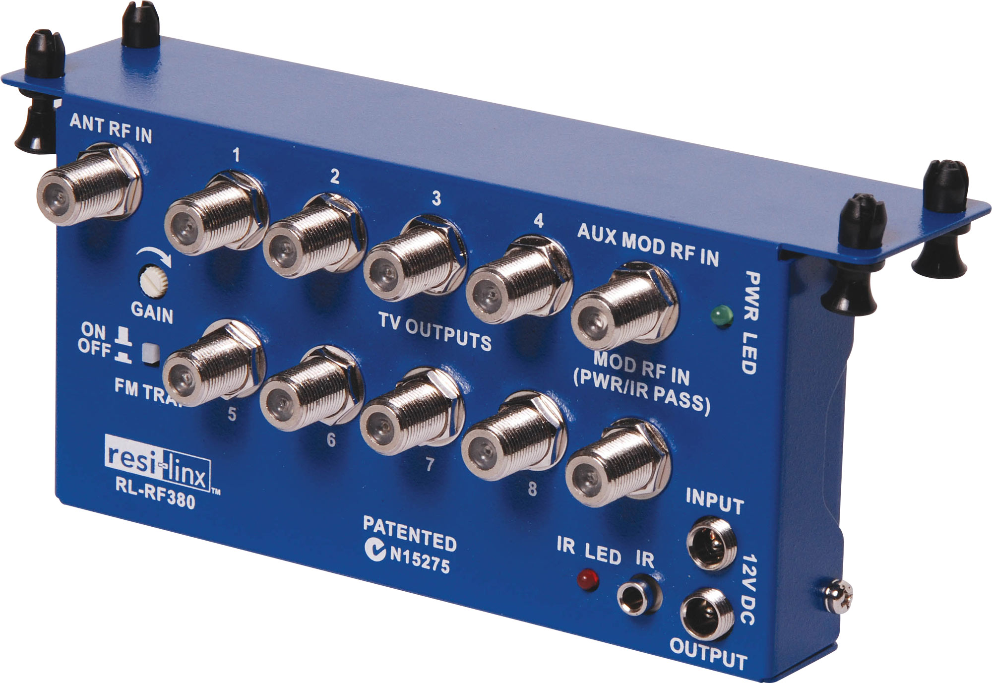 ?Distribute multiple AV signals to multiple TV screens. These multi-channel modulators and associated accessories allow the distribution of stereo audio/video signals from a variety of sources. They enable AV signals from DVD, security camera, Pay TV etc to be transmitted over a single 75Ω coaxial cable. Each AV input can be assigned its own dedicated TV channel. It allows the connected sources to be viewed at multiple locations simultaneously, depending on the splitters used. Selecting the desired source is as simple as changing channels on your TV. The system also allows full control of the AV devices remotely via the A 1055 or A 1056 IR extender modules. All RF connections on the system are made easy with industry standard F connectors. Output RF splitters: Combines the output from the A 1046/48/50 and free to air TV antenna and splits the signal to multiple RF outputs. If infra-red is required in your system, it must include an A 1057 splitter. A 1061 & A 1062 may be used as local zone splitters, providing additional outputs where required. Remote IR targets: Installed next to the TV screen. These devices connect in-line between the TV screen and the modulator/splitter and enables full remote control of the connected AV sources via the existing coaxial cable. DC Blocking module: Required when connecting TV sets directly to the splitter module output without the use of the A 1055 IR target. IR emitters: Connects to the A 1048/50 modulator to send control signals to the AV equipment. Single or dual “eye” versions available. Power supply is included.