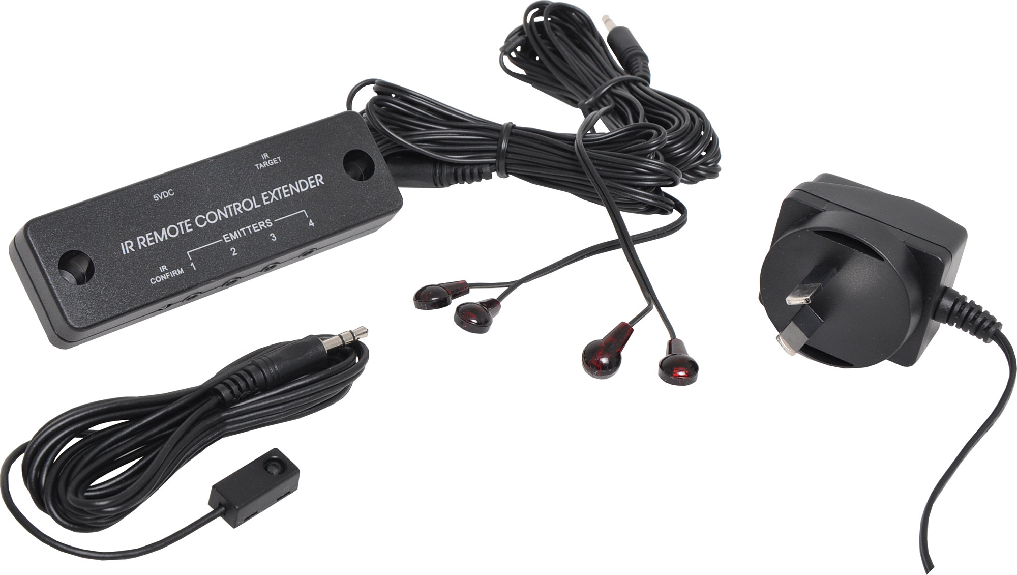 Includes hub, one infra red target and two dual infra red emitters and power supply. Compatible with Foxtel IQ boxes. This infra red distribution system allows you to remotely control your AV equipment even when it is mounted inside a cabinet or located in another room. This complete kit contains everything you need to get a system running. Dual IR emitters: These plug into the hub and are placed in close proximity of the equipment to be controlled. They relay the IR commands to the AV devices. The A 1171A kit is already supplied with emitters, however if you have many devices to control, this dual emitter may be used to control two devices on a single IR output.
