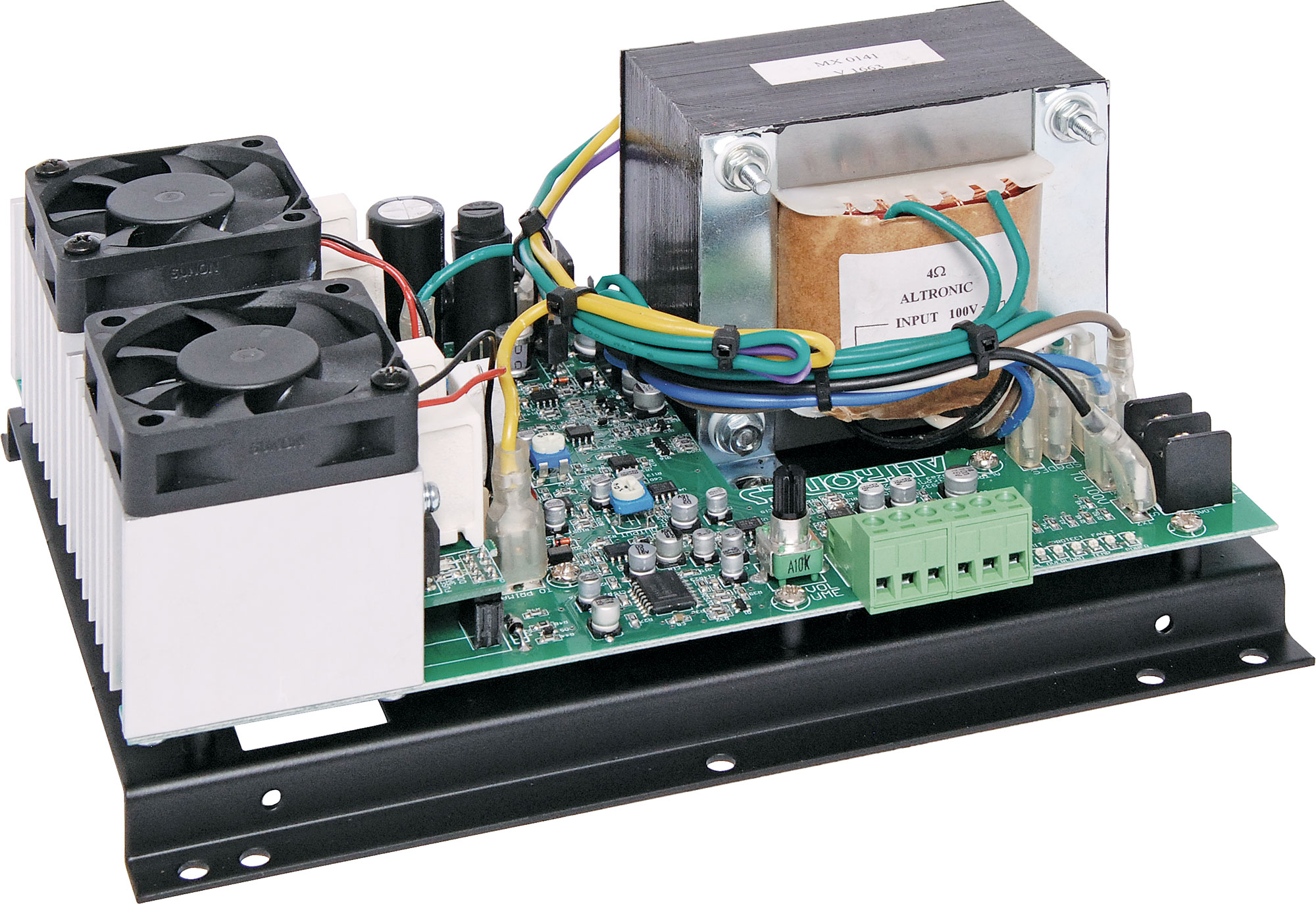 These modules are designed for use in emergency evacuation systems and are powered by an external 24V DC source. They accept a line level audio input and produce a 100V line output via a transformer. The modules feature short circuit, overload and thermal cutout protection, and are constructed on a steel chassis.
