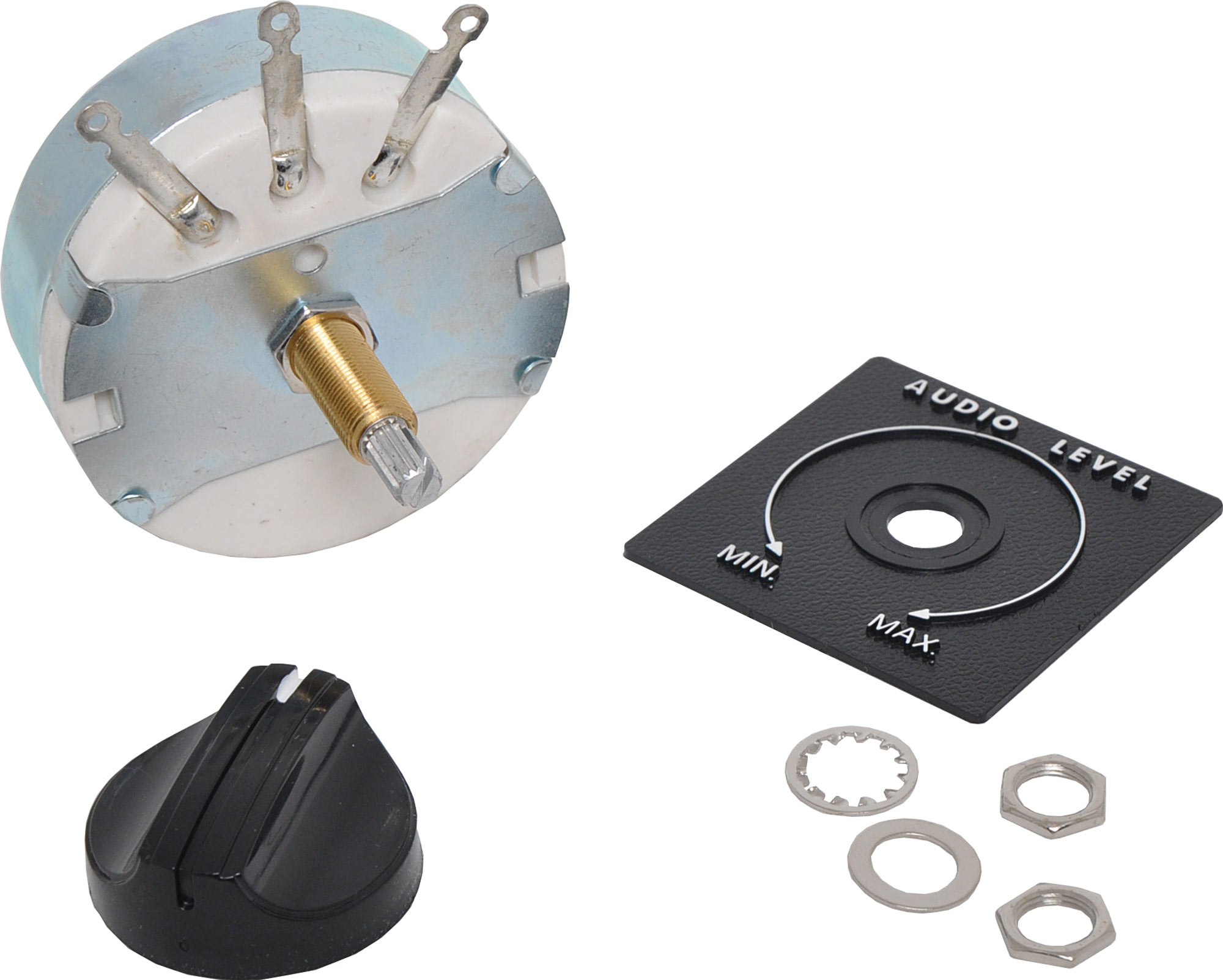 Mono Audio fader, suitable for remote speaker volume controls. Can also be mounted into speaker boxes or wall plates. 100W rating, suitable for 8Ω systems. 65mm diameter. 28mm deep. 21mm thread. Panel plate 54 x 54mm.