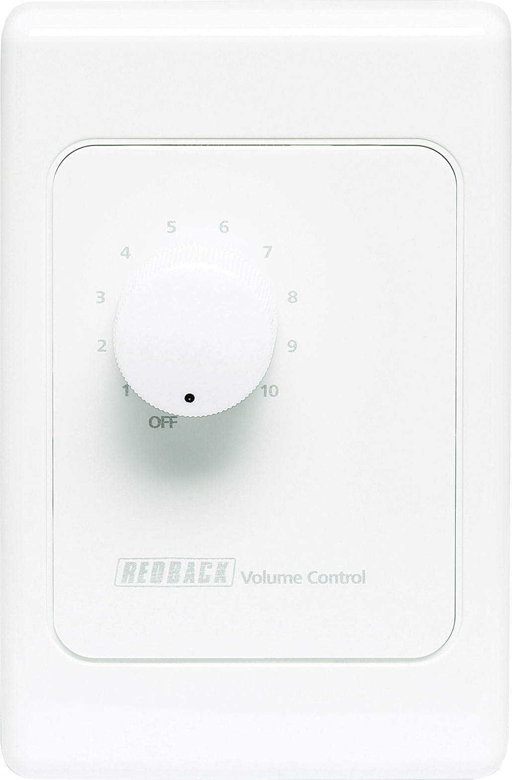 Designed to control 100V line speaker systems these attenuators are fitted to industry standard wall plates and install into an electrical wall box. They feature 11 position switches for fine adjustment of sound level. All circuitry is housed on a PCB with screw terminals for easy installation. They include override relay for emergency paging applications & a 22ยตF bipolar capacitor for line monitoring purposes. An onboard switch selects between normal and failsafe modes. With the switch in the Normal position energising the override relay (24V DC to the 24V DC terminal) bypasses the controller.ย Full input power is directed to the speaker load.ย De-energising the override relay configures the unit to normal level control function. With the switch set to the Failsafe position energising the override relay is necessary for normal level control function. De-energising the override relay bypasses the controller.ย That is, full power is directed to the speaker load. Genuine Clipsal plate