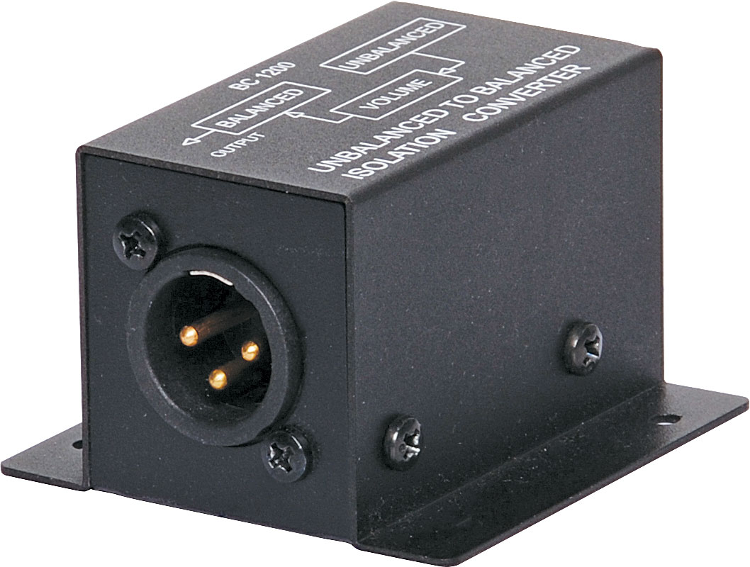 Unbalanced 10K Ohm 2 x RCA to balanced 600 Ohm 3 pin male XLR with level control. -10dB max signal gain.