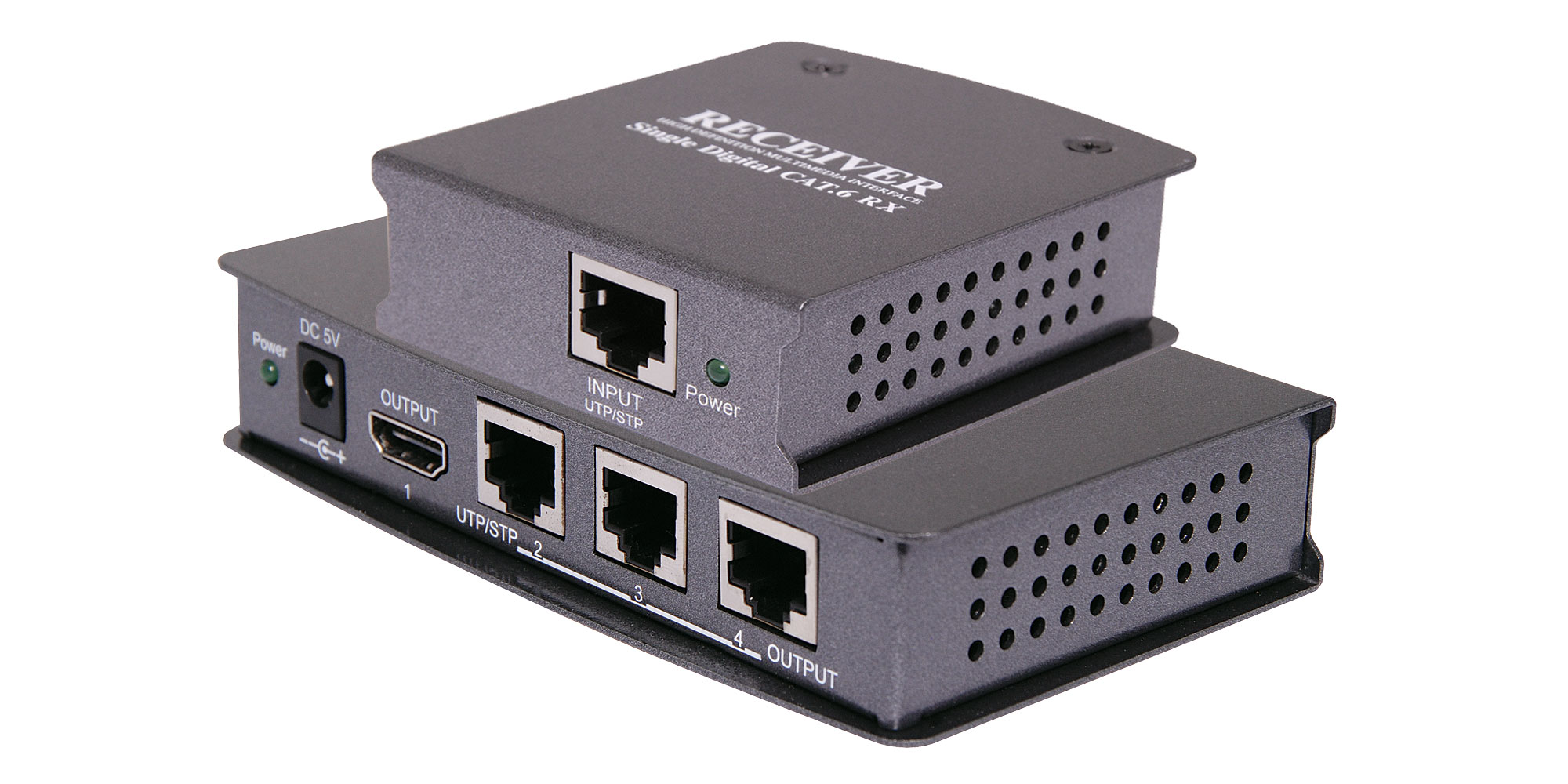 An ideal solution for pubs, clubs and venues, this HDMI balun extender system allows a single HDMI source to be shared across multiple screens located up to 30m away with Cat5e and 50m with Cat6. The transmitter is equipped with four outputs, one HDMI and three Cat6 UTP which transmit the HDMI source signal up to 50m away (1080p). Each UTP output can be either connected direct to a receiver (A 3226), or alternatively a transceiver (A 3225) and receiver can be ‘daisy chained’. Maximum of 7 screens can be connected to the same HDMI source. HDCP compliant. Transmitter: Accepts High Definition sources (Games platform, Blu-ray player (inc 3-D), DVD player, satellite receivers, digital projectors, A/V receivers and set up boxes) and transmits video and audio over Cat.6 up to 50m. HDMI connector input + HDMI output + 3x Cat. 6 outputs. Power Supply 5V 2A. Receiver: Accepts the Cat. 6 cable from the Transmitter, thereby acting as the extender of the original HDMI source. This is connected to the HDMI port of the HDTV monitor. Cat. 6 connector input + HDMI output. Power Supply 5V 1A. Package Contents: 1 x Transmitter 1 x Receiver 2 x Power Supplies: Transmitter 5V 2A; Receiver / Transceiver 5V 1A