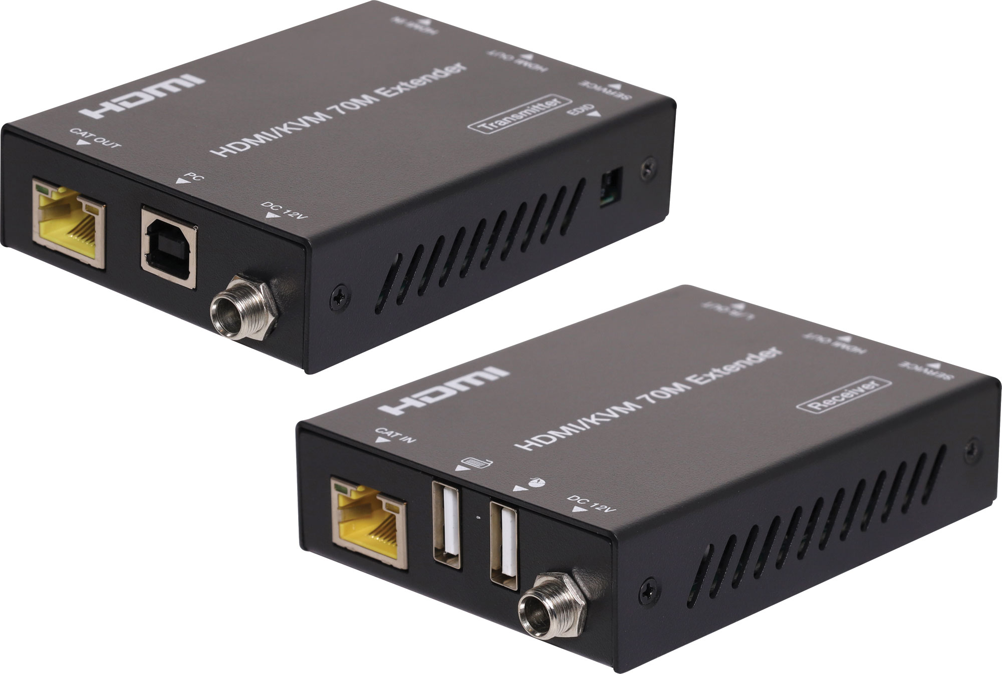 This product is designed to extend HDMI signals over distances up to 70m using Cat6/6a cabling. In addition it also allows USB peripherals to control a connected computer from the receiver end. The cable bandwidth allows for zero-delay operation even with HDMI resolutions up to 4k @ 60Hz. The extender supports KVM passthrough which can remote control source device at the display end. Power is via included power supply which can be located at either end of the cable run (Power Over Cable - POC support). Package Contents: 1 × 18Gbps HDMI Extender (Transmitter) 1 × 18Gbps HDMI Extender (Receiver) 1 × USB-A to USB-B Cable (1.5m) 4 × Mounting Ears 8 × Machine Screws (M3 x 4) 1 × 12V/1A Locking Power Adapter 1 × User Manual