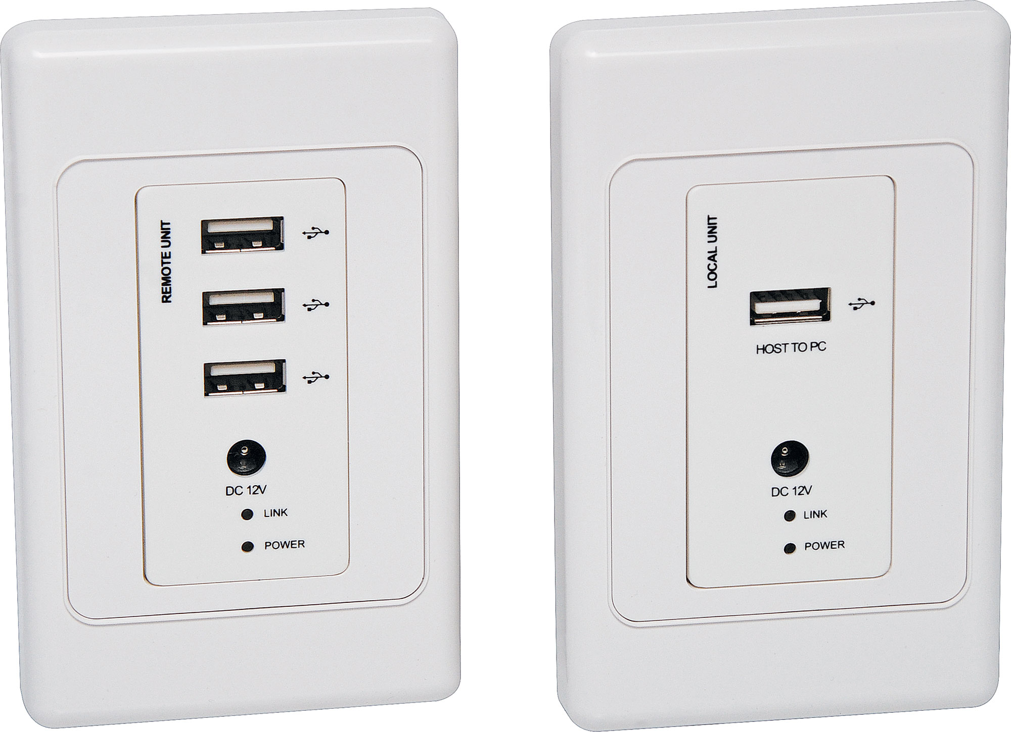 A point to point USB 2.0 over UTP balun pair mounted into a wallplate for transmission of USB data between rooms at rates of up to 480Mbit/s. Installation is made easier via Power over UTP, which only requires a single power source at either the receiver or transmitter end. Maximum USB transmission distance 50m when using a standard Cat5e UTP cable type. No drivers need to be installed. Plug and play operation. Ideal for extending the reach of cameras, display cards, network adaptors, hard drives, flash drives, MP3 players, CD/DVD Roms, printers and scanners etc.