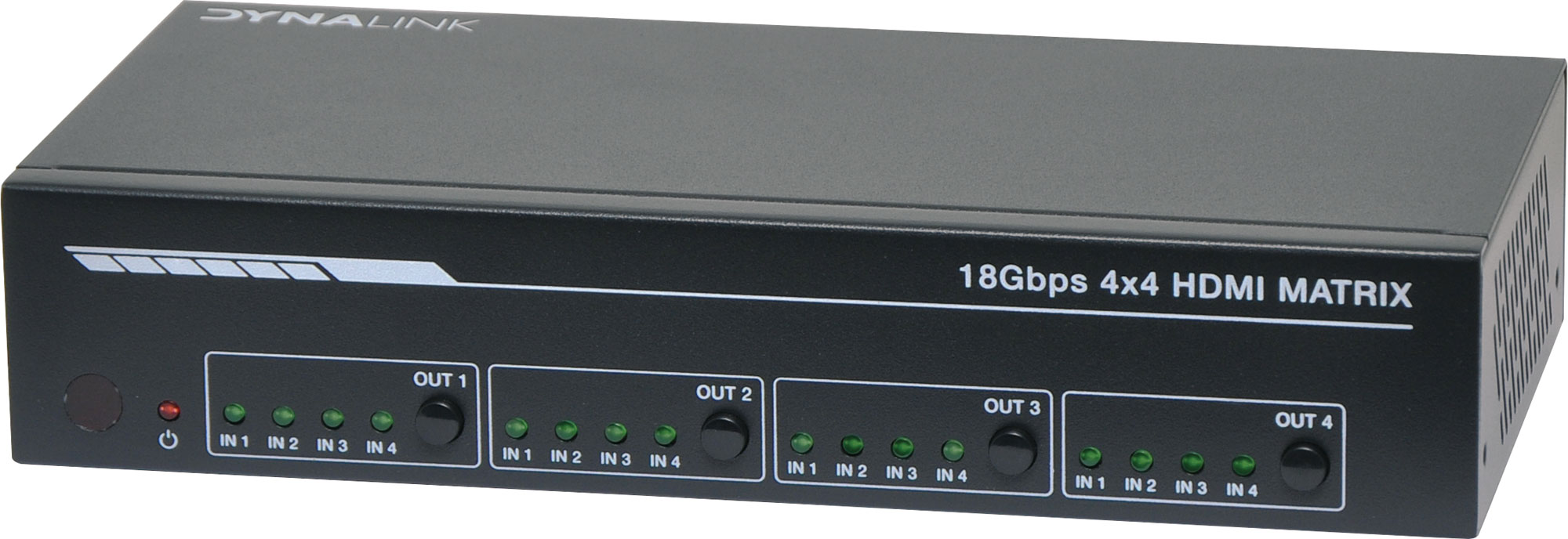 This 4x4 HDMI 2.0 18Gbps Matrix Switcher is designed for commercial AV systems and can switch any of the 4 HDMI 2.0 Sources to four HDMI 2.0 Displays. Each input and output supports up to 4K @ 60Hz 444 resolution and HDCP 2.2. The outputs can be individually scaled for 1080p. De-embedded audio as analog L/R and coaxial is available for both outputs. The ARC function can return display device audio to coaxial port output only. Advanced EDID management is supported. With its 18Gbps bandwidth and the additional features with latest HDMI standards. This switcher can be controlled from the front panel, RS-232, IR remote or TCP/IP. See accessories list below for replacement remote control battery. Package Contents 1 x 4x4 HDMI 2.0 18Gbps Matrix Switcher 1 x 12V/2.5A Locking Power Adapter 1 x IR Remote 2 x Mounting Ears 1 x 38KHz IR Receiver Cable (1.5m) 1 x 3-Pin Phoenix Connector 1 x User Manual