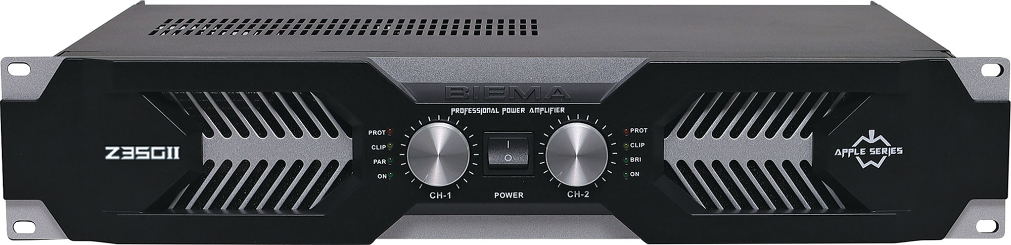 The Apple series Biema power amplifiers are a cost effective solution for demanding commercial audio applications. These non-bridgeable models are designed to be used as standard 2 channel or stereo amplifiers. The design incorporates a fan forced cooling sys