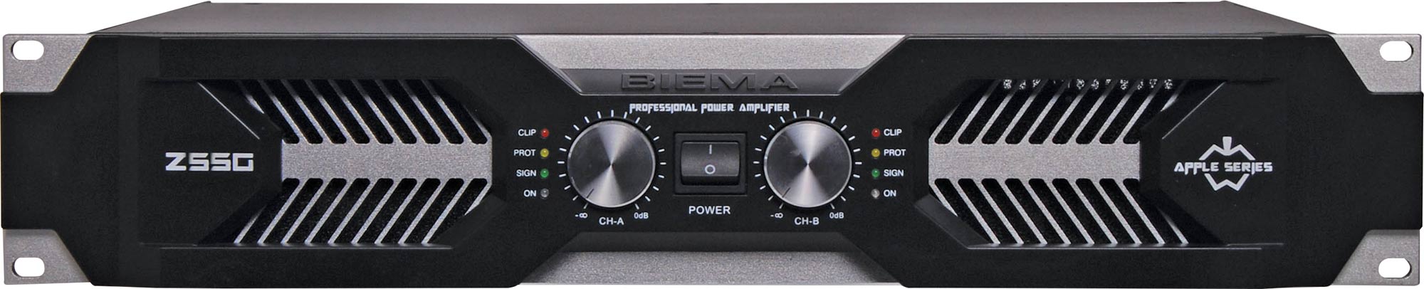 This new series dubbed the βAppleβ range have been completely redesigned by Biema to offer vastly improved cooling, efficiency and circuit protection. This range is designed to function as a stereo or high power single channel amplifier for use in foreground sound reinforcement ie: pubs, clubs, cinemas and multi-function venues. The variable speed cooling fan and βTβ shaped heatsink tunnel ensure the amplifier performs well even in demanding conditions. The protection circuitry employed ensures the integrity of the amplifier during overload condition, output terminal short circuit and output clipping. Each channel is fitted with a recessed front mounted volume level. Inputs are via balanced 3 pin XLR or unbalanced 6.35mm jack. Output connections are made via binding post or heavy duty Speakon connector.