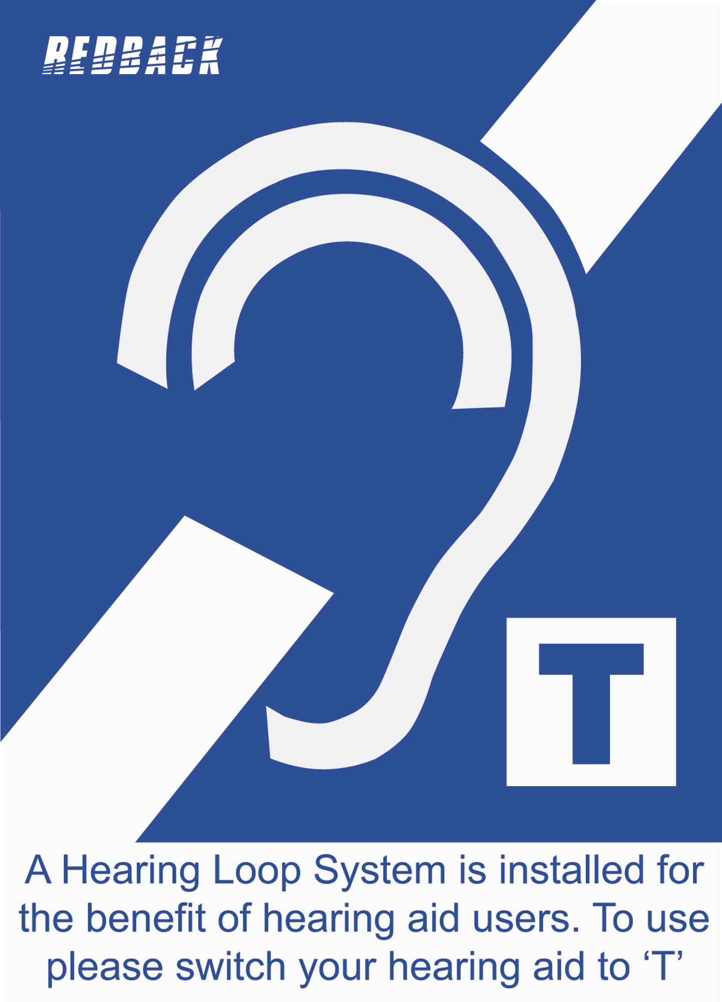 Pack of 5 indicator labels to inform patrons that there is a hearing aid induction loop installed. 140H x 100W mm. Label is double sided for visibility on both sides of the glass
