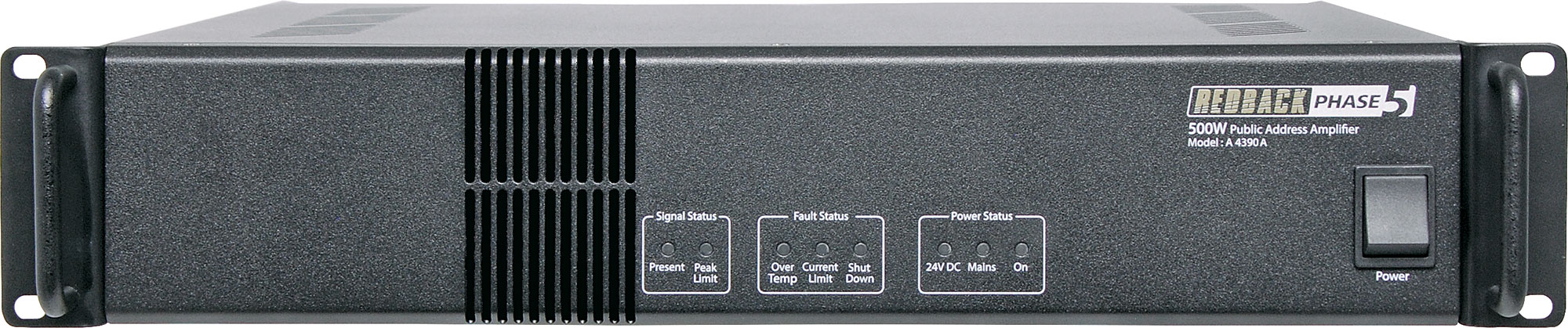 This booster is ideal for installations requiring a high power zone amplifier. Ideal for use in shopping centers, pedestrian precincts, public transport facilities and convention centers. Operates on 240V ac and 24V dc for battery backup operation. Input is via 3 pin balanced XLR (1V). Level control is rear mounted to prevent tampering or accidental adjustment. The circuit design includes protection features in case of output over voltage, over current and over temperature conditions. All are self resetting once the fault condition has been removed. Visual indication via front panel LEDs show amplifier status at all times. On demand fan cooling ensures reliable operation at all times.