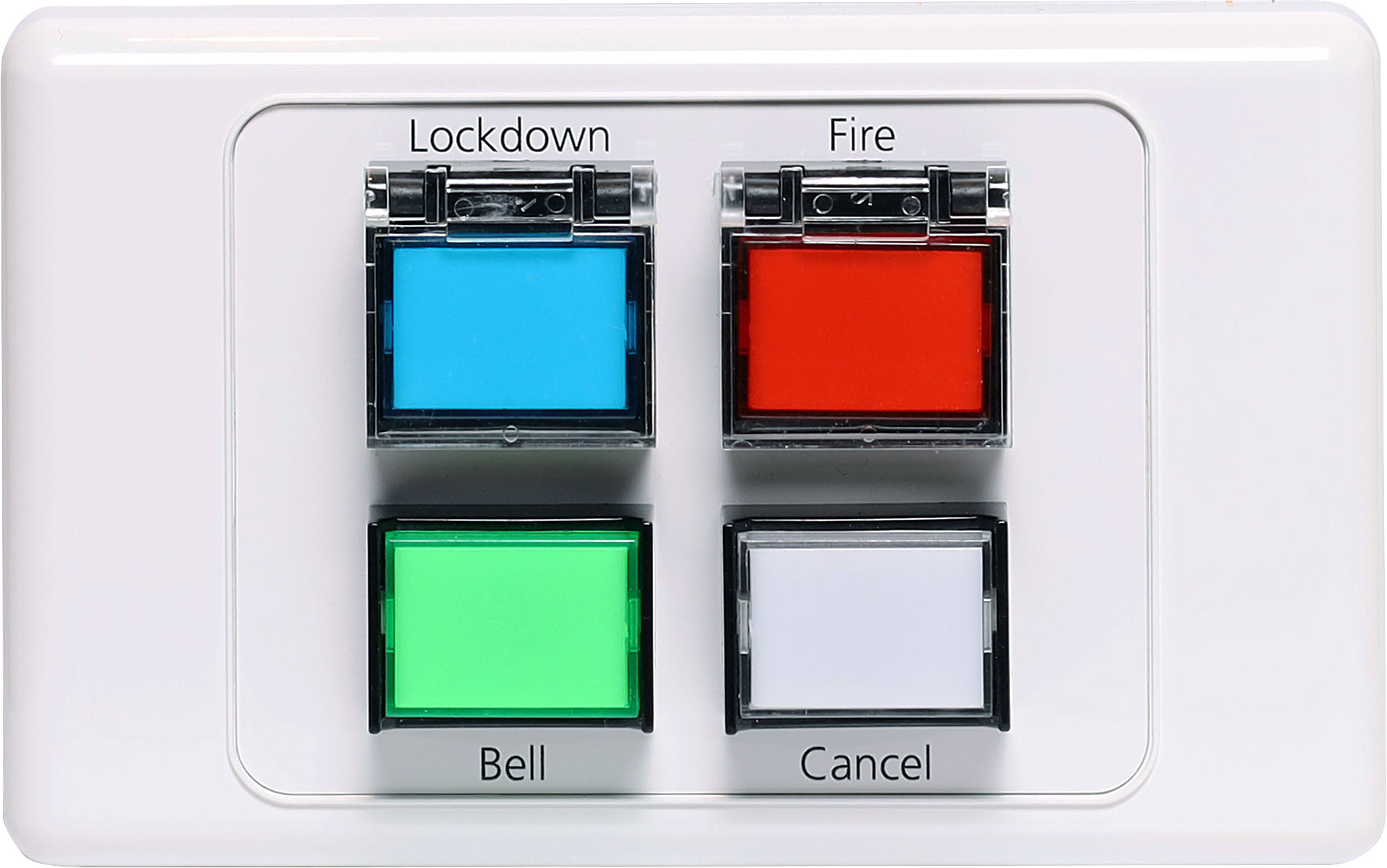 The Redback® A4599 wall plate allows the Redback® A4505 Lockdown Timer to be controlled remotely. With the remote function the user is able to trigger the Lockdown, Fire and Bell tones and the cancel function. The switches are momentary operation and must be pressed for up to 3 seconds to activate. The switches have protective “flip up” covers to prevent accidental operation. Connection is made to the Redback® A4505 via standard Cat5e cabling. There are two RJ45 ports on the rear of the wall plate, either of which can be used. Only one Redback® A4599 wall plate is allowed to be connected to the Redback® A4505 via the RJ45 port. All wall plates assembled by Altronics are supplied with two facia clip on covers. These are designed to match your current decor. Simply clip on the desired cover after installation.
