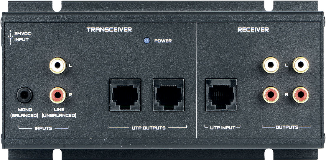 This Local Input/Output Hub Interface Box is a compact system hub for interfacing input and output wallplates together with existing zone audio amplifiers and audio sources. Allows connection for up to 2 UTP output wallplates and a single UTP input wallplate. Two stereo RCA outputs provide connection to line input on external amplifiers.