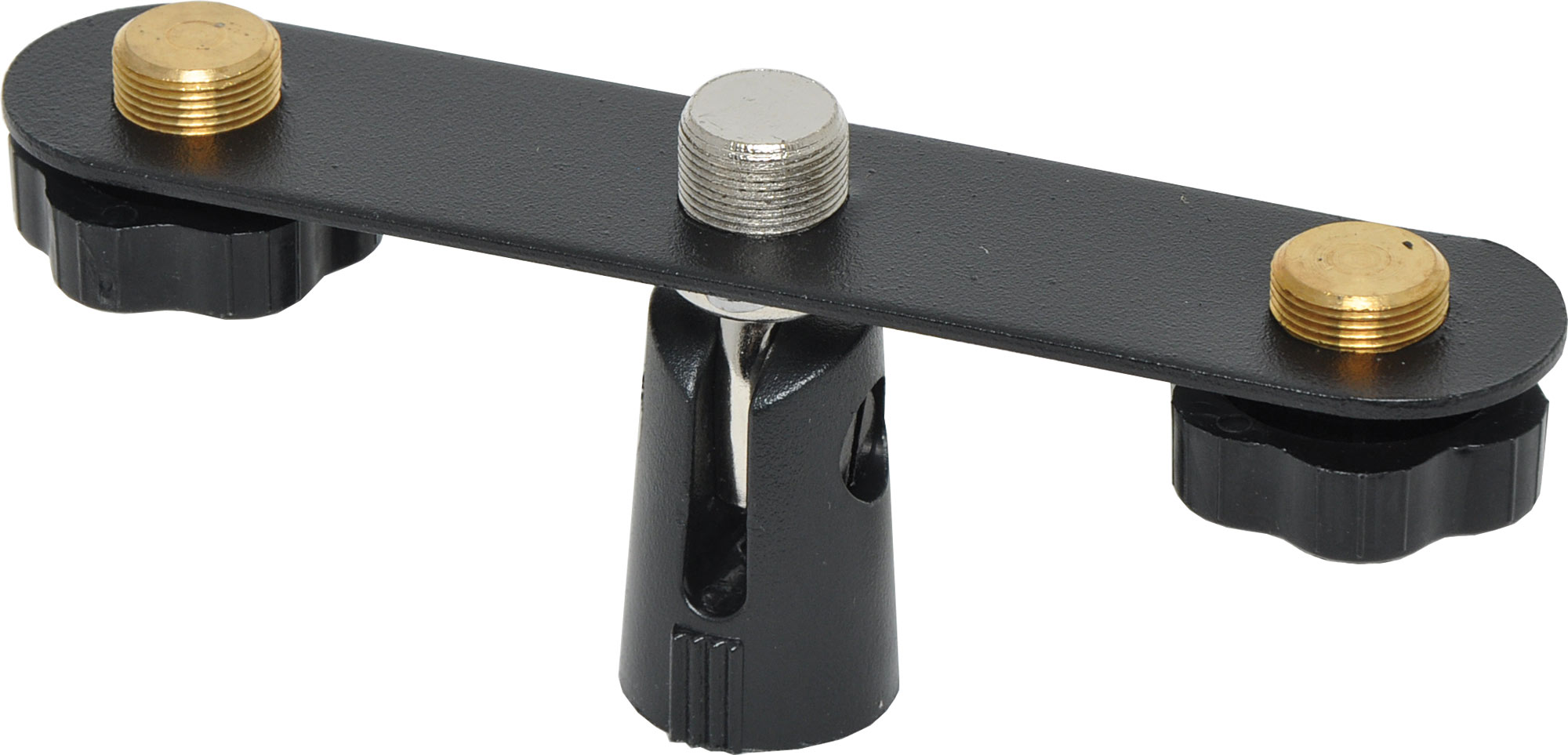 Enables 3 microphones to be mounted on a single mic stand. Simply screws on to the 5/8” thread then the mic holders screw to the crossbar.