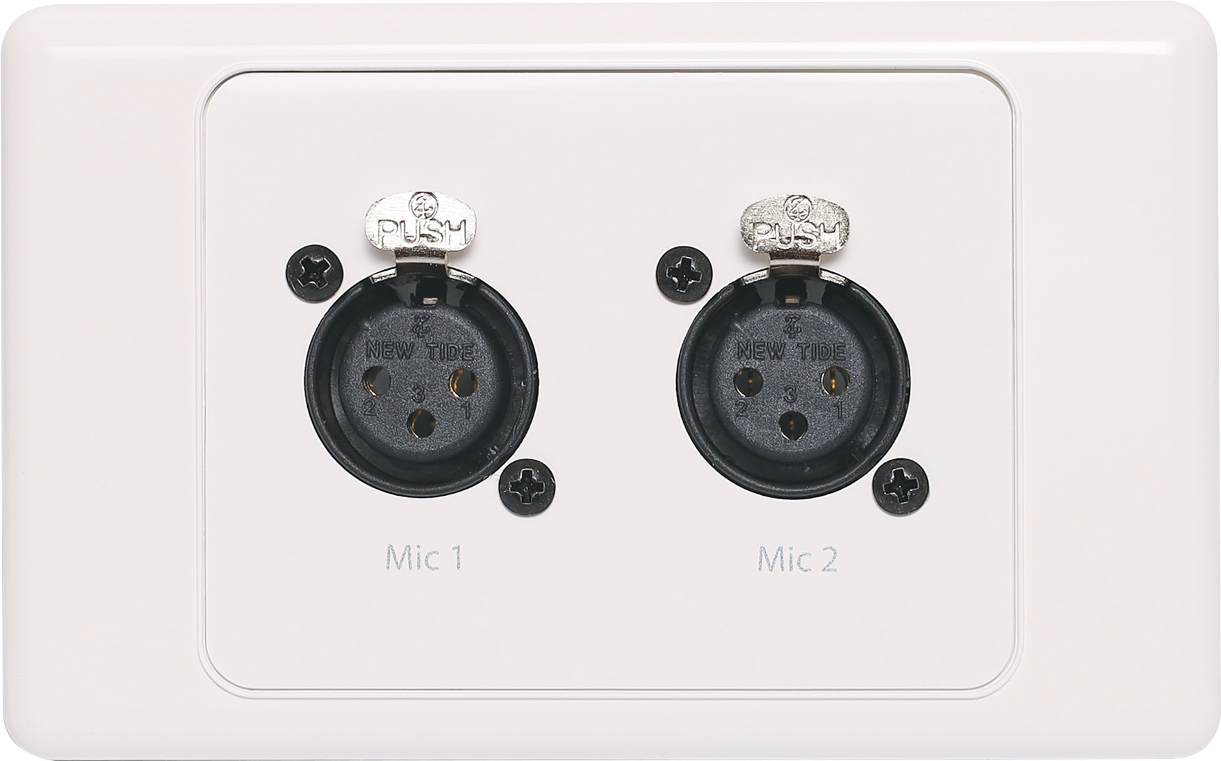 3 pin XLR microphone connector mounted horizontally on a dual face wall plate. β€œOne-Shot” version with screw terminal connections for quick and easy connection on site. Altronics dual cover type wallplate.