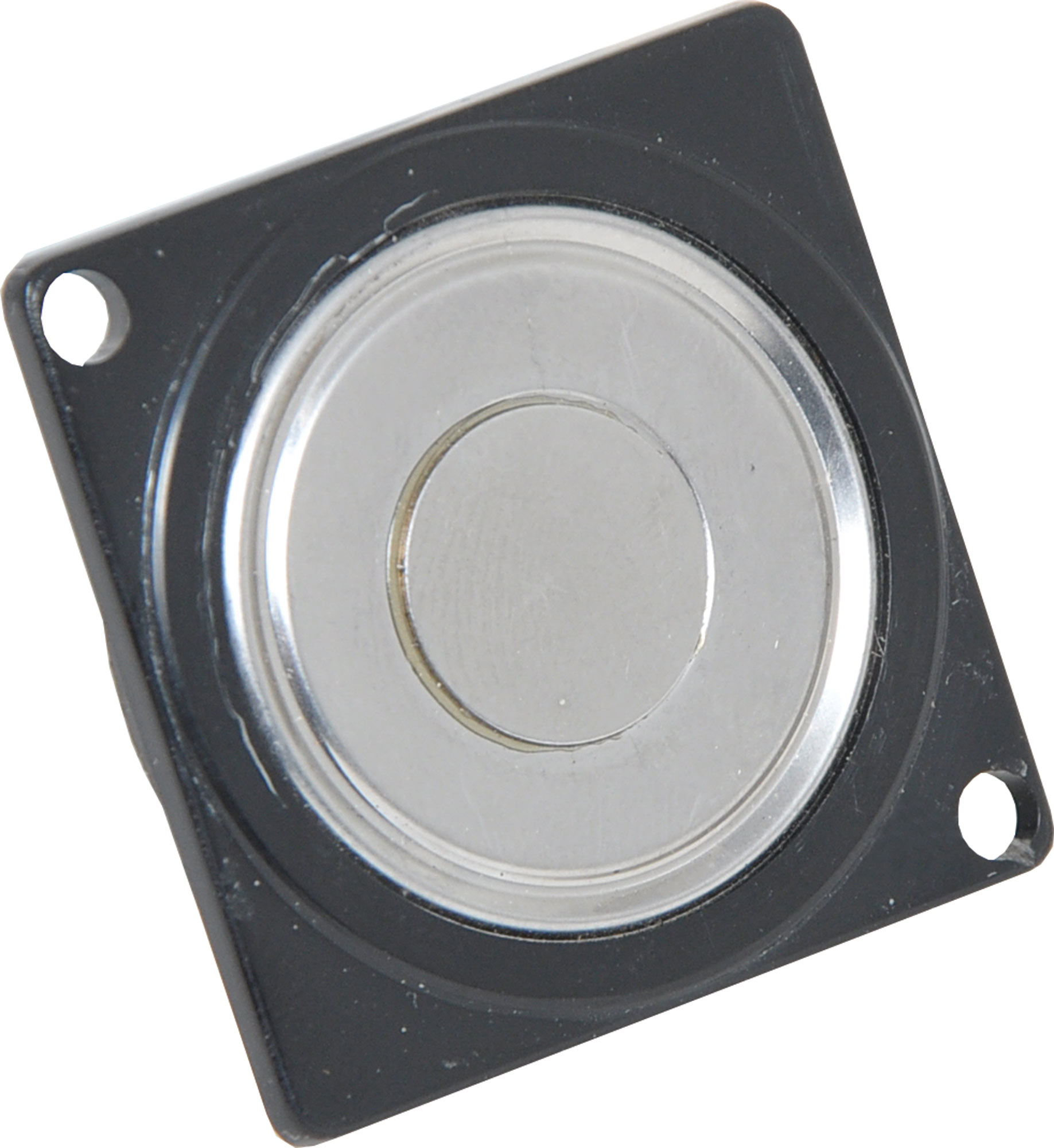 400mW, 8Ω. As used in telephones, fax machines, modems etc. 5mm thick. Diagonal mounting hole centres at 37mm.