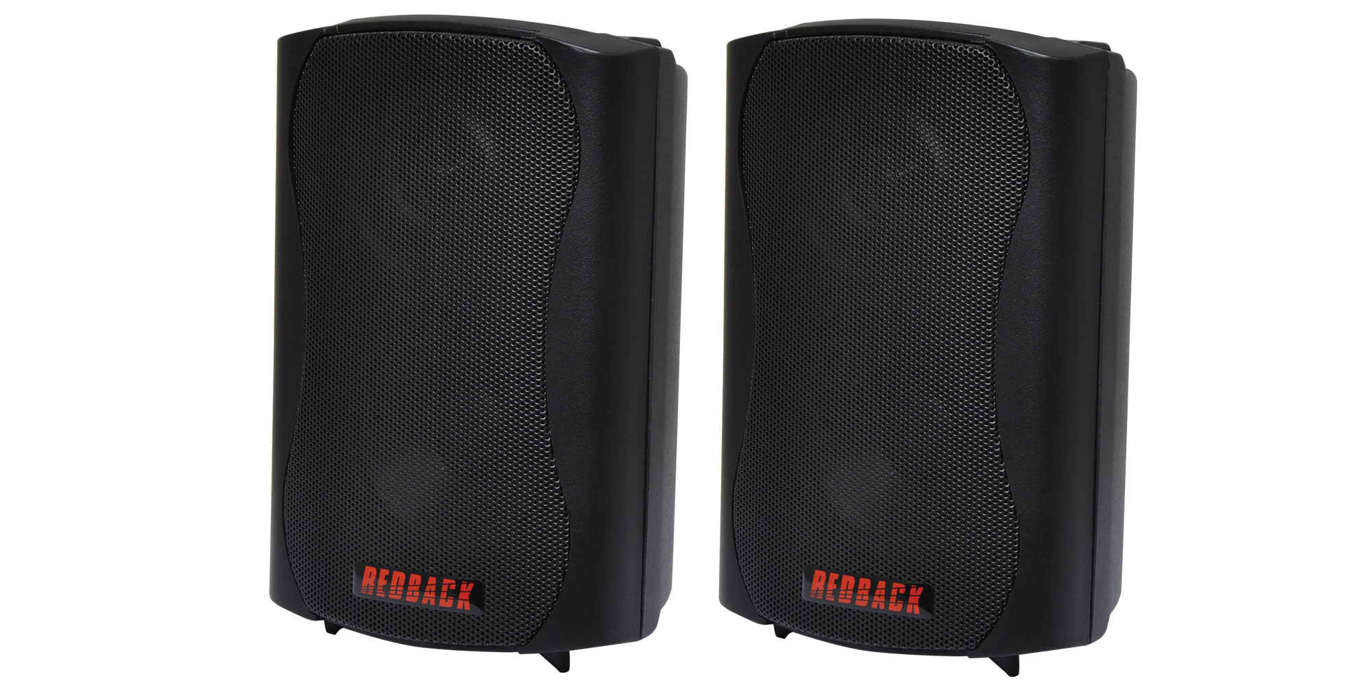 These wall mount music speakers feature exceptional sound quality for both domestic and commercial applications, such as theatre surround or bookshelf speakers, and PA sound reinforcement. They offer a stylish contoured profile together with a quick mounting bracket that virtually disappears once mounted. Each feature a 2-way speaker system for optimum frequency response and clarity. Connection is via the recessed inbuilt gold plated banana sockets on the rear. This model features a 30W 3.5" woofer and mylar dome tweeter combination. It is also available in 45W, 50W and 85W versions. The 100V line models provide multiple power taps and 8 ohm settings, easily selected via the inbuilt rotary switch. 100V line models include 20W line transformer with multiple power taps, plus an 8Ω setting rated at 30W. All models in this range are IP54 rated for outdoor, marine and tropical applications. Grilles and brackets are constructed from marine grade aluminium and painted with long lasting industrial strength powdercoat to withstand the harshest of environments. All models sold in pairs.