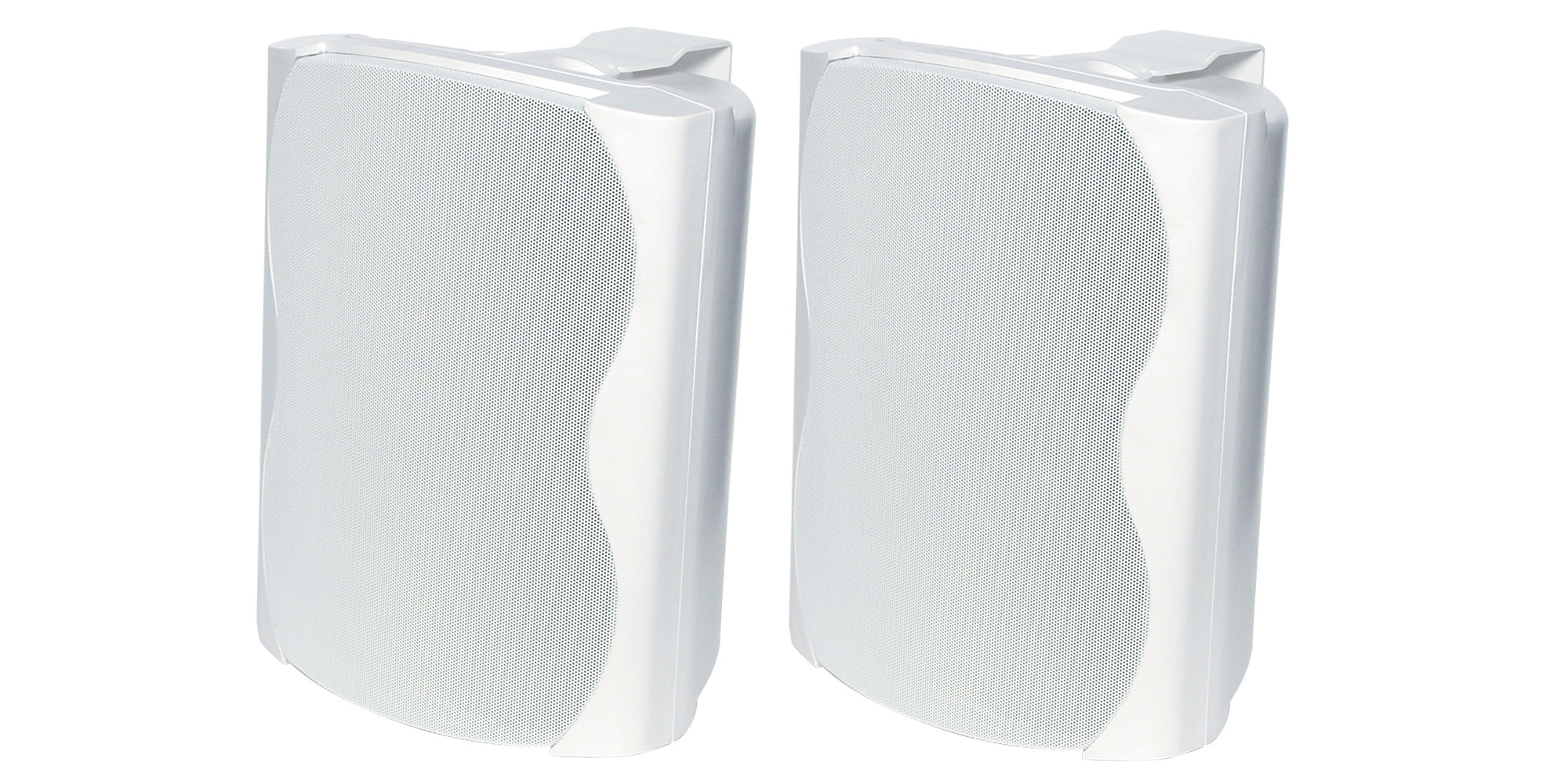 These wall mount music speakers feature exceptional sound quality for both domestic and commercial applications, such as theatre surround or bookshelf speakers, and PA sound reinforcement. They offer a stylish contoured profile together with a quick mounting bracket that virtually disappears once mounted. Each feature a 2-way speaker system for optimum frequency response and clarity. Connection is via the recessed inbuilt gold plated banana sockets on the rear. This model features a 85W 8" woofer and silk dome tweeter combination. It is also available in 30W, 45W and 50W versions. All models in this range are IP54 rated for outdoor, marine and tropical applications. Grilles and brackets are constructed from marine grade aluminium and painted with long lasting industrial strength powdercoat to withstand the harshest of environments. All models sold in pairs.