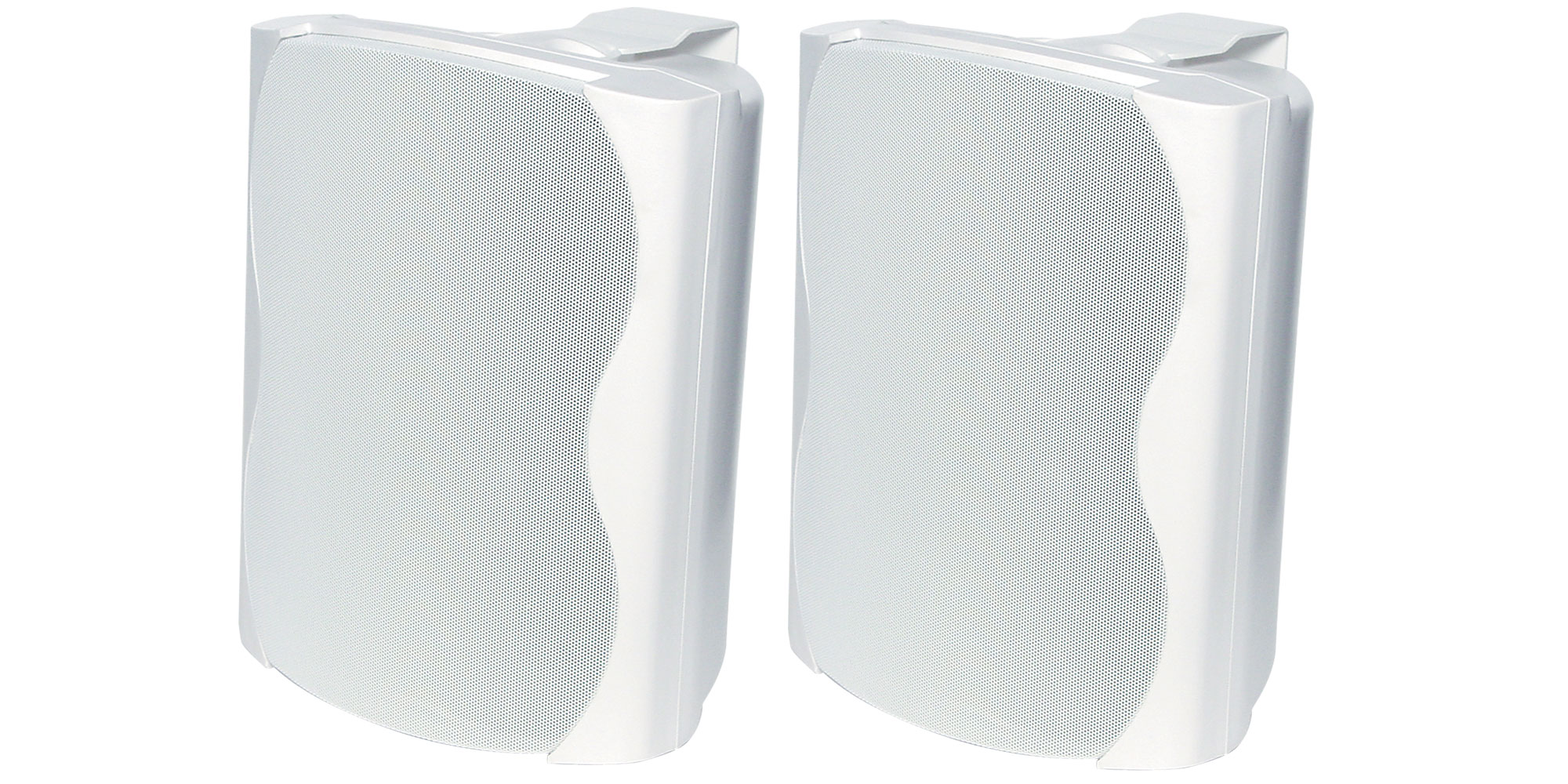 These wall mount music speakers feature exceptional sound quality for both domestic and commercial applications, such as theatre surround or bookshelf speakers, and PA sound reinforcement. They offer a stylish contoured profile together with a quick mounting bracket that virtually disappears once mounted. Each feature a 2-way speaker system for optimum frequency response and clarity. Connection is via the recessed inbuilt gold plated banana sockets on the rear. This model features a 50W 6.5" woofer and mylar dome tweeter combination. It is also available in 30W, 45W and 85W versions. The 100V line models provide multiple power taps and 8 ohm settings, easily selected via the inbuilt rotary switch. 100V line models include 50W line transformer with multiple power taps, plus an 8Ω setting rated at 50W. All models in this range are IP54 rated for outdoor, marine and tropical applications. Grilles and brackets are constructed from marine grade aluminium and painted with long lasting industrial strength powdercoat to withstand the harshest of environments. All models sold in pairs.