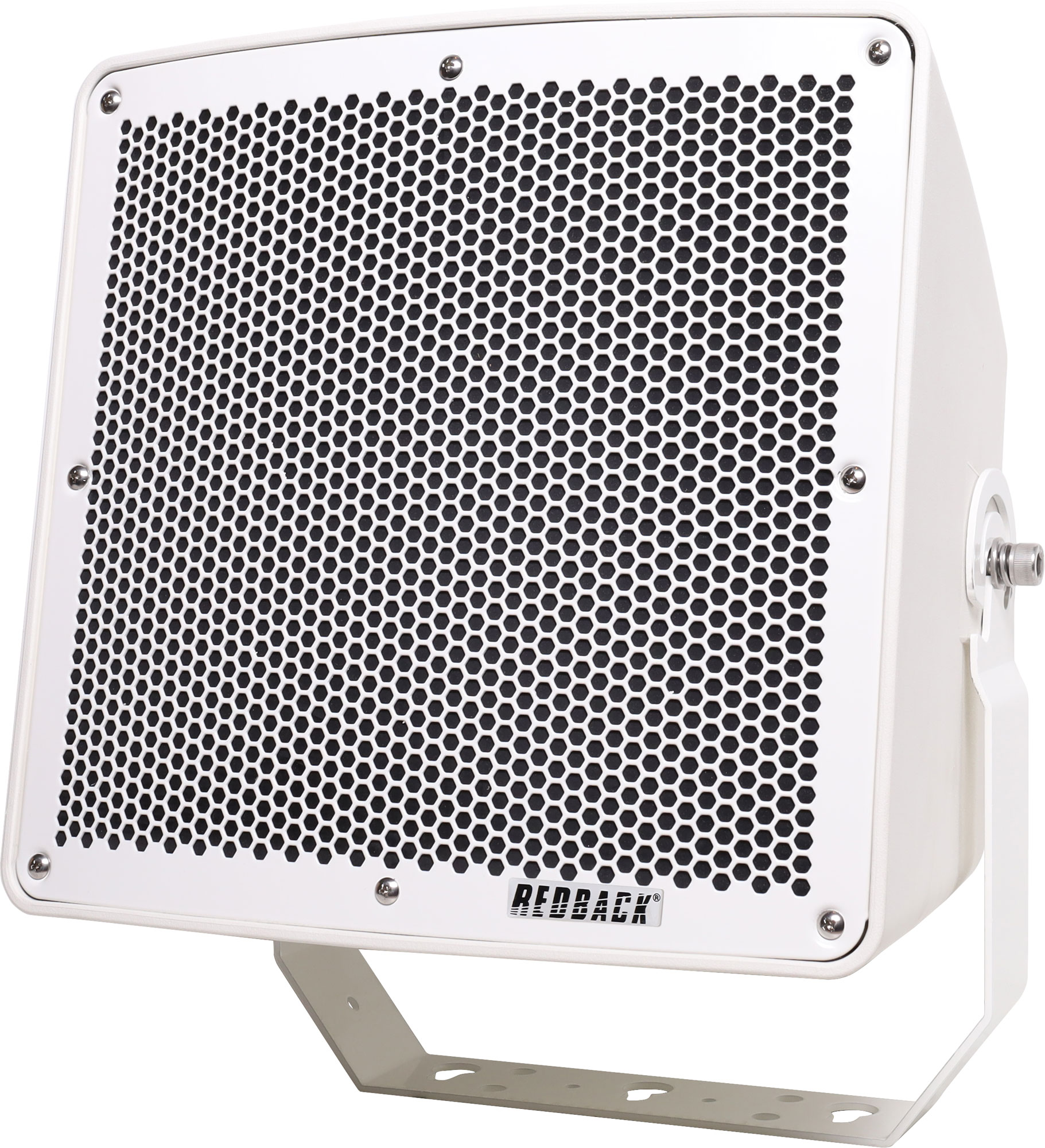 This all weather long throw PA speaker features a two-way driver, including 8-inch woofer and 1-inch tweeter for PA sound projection. It offers the flexibility of 8 ohm or 100V line settings with a total power handling up to 350W and max 100V power tap of 150W. This makes it ideal for dispersing sound across large open areas like parks, stadium concourses and public open spaces. The connection panel on the rear offers rotary power tap selection and loop in, loop out terminals for simply termination in the speaker chain (extra cable gland and knock out on rear panel provided). All connections are covered by a sealed screw in panel preventing moisture and dust ingress to a rating of IP55. Size: 310W x 355D x 310Hmm (exc. bracket)