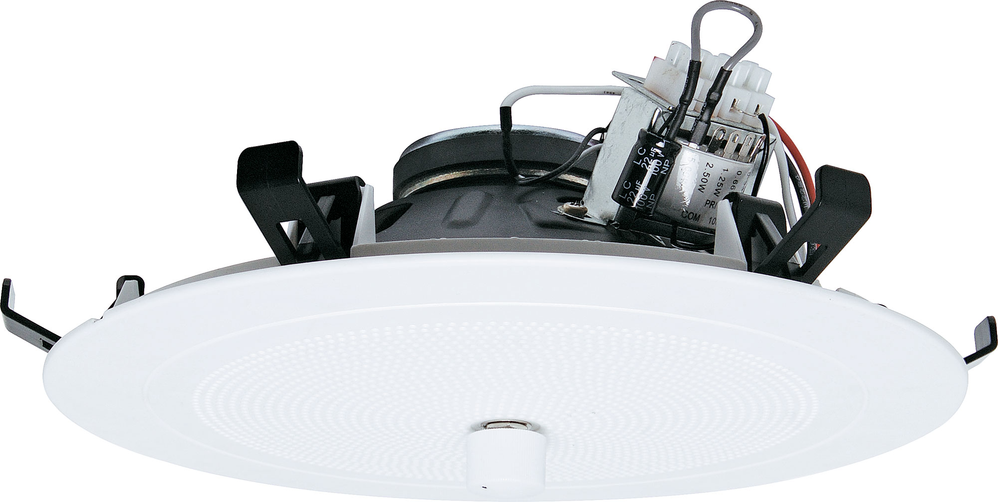 This 200mm (8") One-Shot Redback PA ceiling speaker has been engineered to be EWIS compatible and offer fast installation. A volume control in the middle of the grille allows for easy adjustment of local volume level. Ideal for installations where local volume needs to be higher or lower than the surrounding zone level. These speakers are ideal for BGM, paging & emergency warning applications. The offset transformer mounting allows mounting in ceilings with limited recess space. Fitted with twin cone 200mm driver with 4 way wire protect terminal block & 22uf bipolar cap.