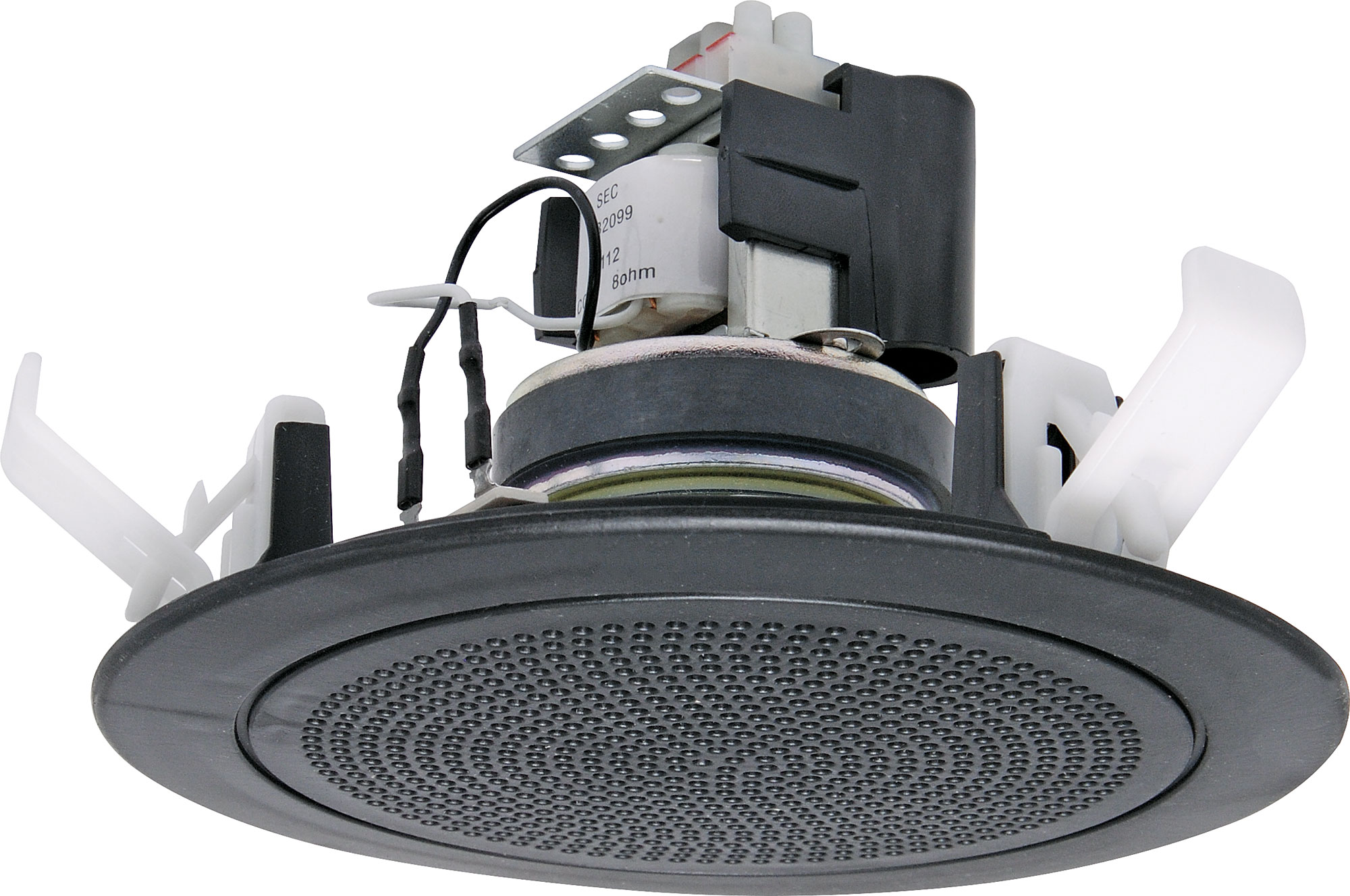 This custom designed speaker and transformer combination has been specifically engineered to ensure a wide frequency range and dispersion angle, plus a high sound pressure level (SPL) ensuring excellent music and speech intelligibility; which is highly desirable for emergency paging applications. Modelled on the popular Redback® One-Shot design, the ‘rat trap’ uses an ingenious patented spring mechanism that snaps like a rat trap when activated. Includes three retaining clips ensuring the grille fits snugly to the ceiling without sagging or drooping, even in soft ceilings. For best results we recommend using the T2312A hole saw. Fitted with 4 way wire protect terminal block, 22µF bipolar capacitor, transformer safety cover and cable restraint plate as required by Australian standard.