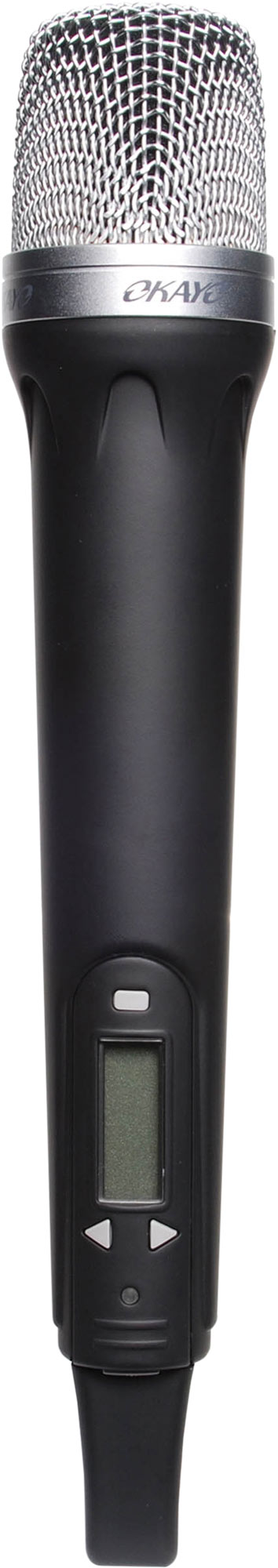 Okayo condenser handheld microphone transmitter. 96 channel UHF. 520-544MHz. Please ensure your system is compatible with this frequency before making your purchase. - Exceptional performance - Textured body - Requires 2 x AA batteries, either alka