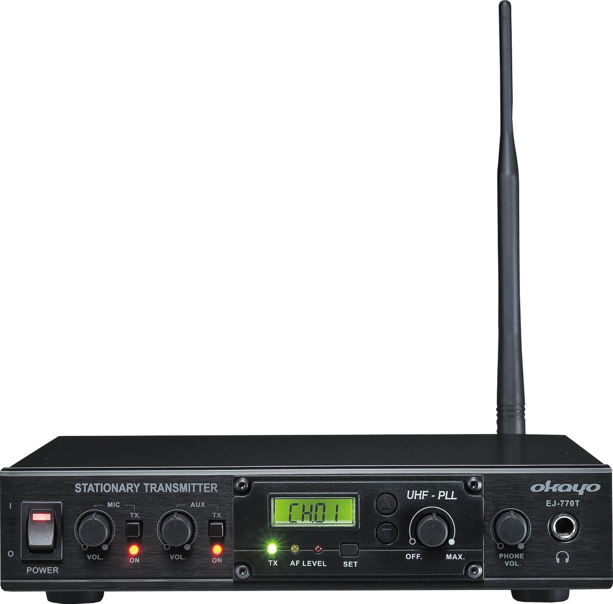 An excellent solution for extending a PA system to a nearby building where cabling is impossible or impractical to install. The desktop transmitter accepts a standard paging microphone or line level feed from the existing PA system and transmits it to the receiver unit in the remote location. This then feeds the signal into the amplifier at that location. This allows any program source fed into the primary amplifier to be relayed to the remote PA system. Ideal for both permanent or temporary installations such as PA systems at carnivals, sporting events, mine sites, construction sites, agricultural shows etc. Transmission range up to 100m line of sight in ideal conditions. Includes power supply. Dimensions: 215W x 210D x 44Hmm. Desktop transmitter will also operate with all Okayo® portable PA systems (fitted with a UHF receiver)