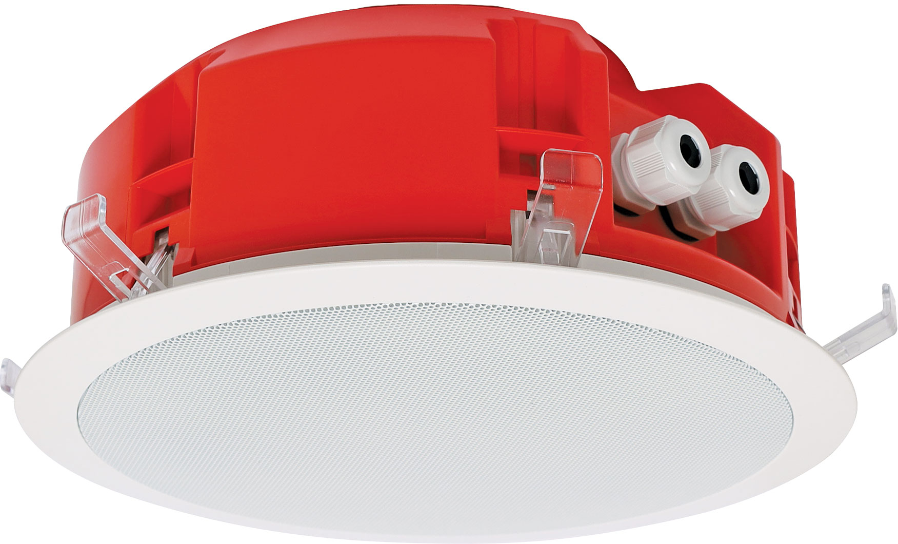 CF2238 is a ceiling mount speaker certified to the AS ISO7240.24 standard for fire & evacuation announcements in buildings. Each speaker is fitted with a fire retardant speaker/transformer dome and is fitted with sealed gland cable entries and terminal blocks for easy on site termination. The speaker utilises the One-Shot ‘snap fit’ mounting system. The CF2238 features a metal grille. This range of speakers have been engineered to meet the requirements of evacuation and occupant warning paging systems. The high efficiency speaker and transformer combination ensures high SPL, wide frequency response, superior speech intelligibility and reproduction for mission critical applications. All components of the fixture are manufactured from high quality, long lasting, flame retardant material and tested to the rigours of the new standard. On site installation will be simple and straight forward. Oversized cable glands and terminal blocks will make on site termination easier than other competing products. Finally the speaker will just ‘snap fit’ into the ceiling. Far easier than competitors models being offered on the market. The Labour Saving One-Shot® Mounting System Redback® “One-Shot®” speaker units install in seconds providing substantial labour cost savings for the professional installer compared to traditional mounting methods. The “Rat-Trap” version is the first “One-Shot®” to utilise a retaining 3 way spring latching system. Each latch is set like a rat trap before installation into the speaker hole. When the speaker is pushed into the ceiling, the latches spring open, securing the speaker in place. The snap clip material is formulated to retain long service life strength and spring action, ensuring a firm vibration free fit to either gyprock tiles, mineral fibre tiles or fixed gyprock ceilings. A neutral white RAL colour provides an architecturally unobtrusive finish to virtually any installation.