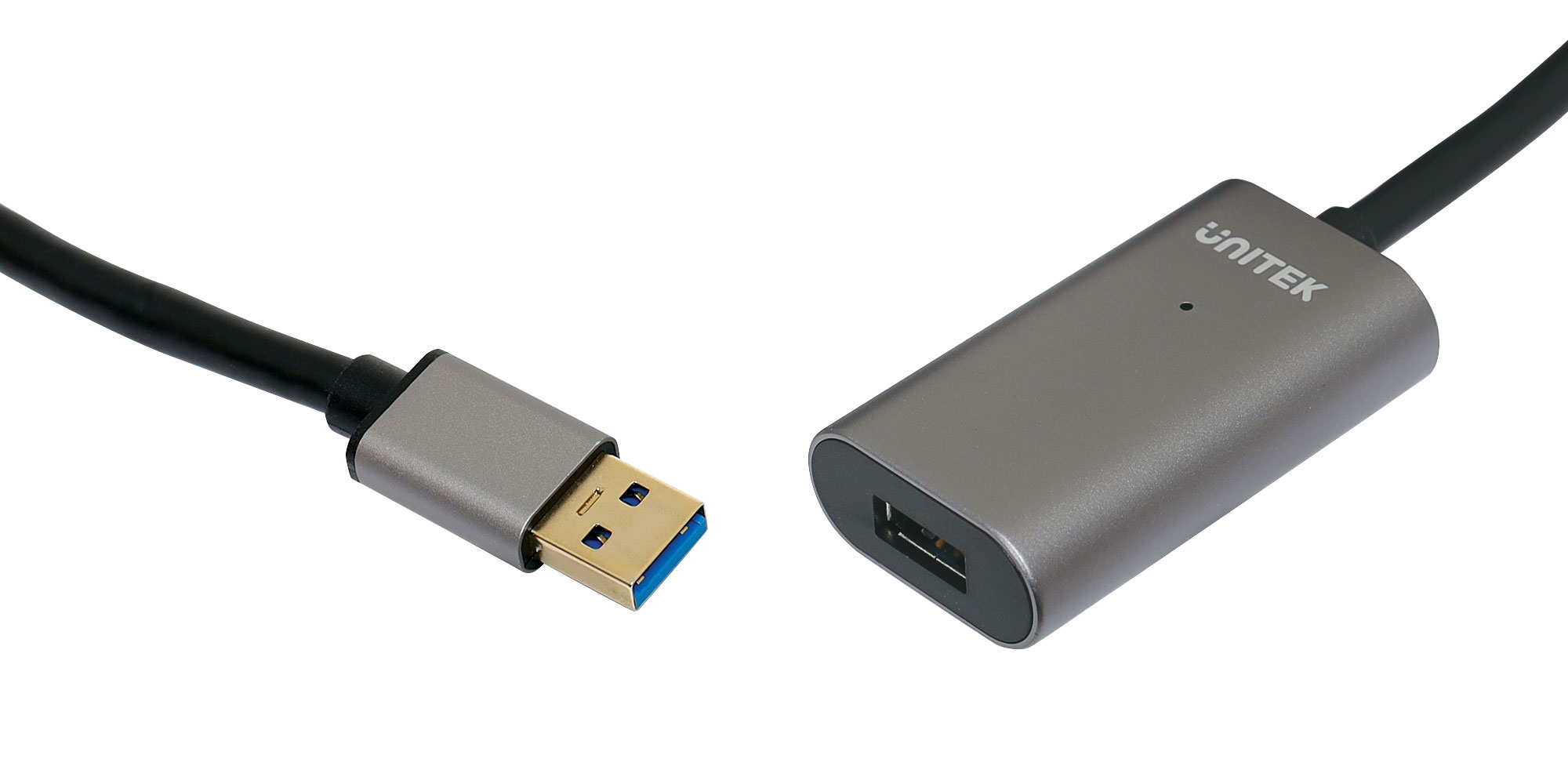A USB 3.0 active extension cable designed to achieve distances up to 5m with high speed 4.8Gbps USB 3.0 connection. Ideal for connecting USB 3.0 peripherals such as external drives in server racks etc, where 3m USB 3.0 leads may not be long enough. Up to three units can be daisy chained together for a maximum length of 15m. For high current USB bus requirements users can add our recommended plug pack with a 1.35mm Plug Adapter (both are listed in accessories below). Powered via USB bus but has provision for a plug pack should a device have insufficient current.