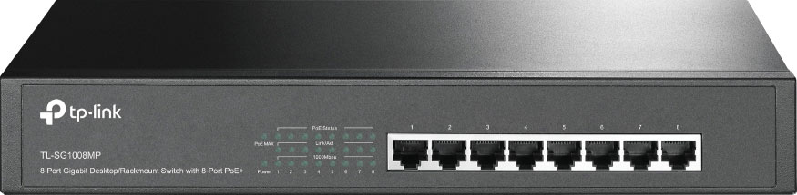This 8-Port Gigabit Desktop/Rack mountable Switch has all 8 ports supporting the IEEE 802.3af/at, PoE+ standard. It provides a simple way to expand a wired network by transferring power and data over a single Ethernet Cable. With a total power budget of 126W, up to 30W per port. It can power more high-powered devices such as wireless Access Points (APs), IP Cameras or IP Phones. Moreover, with innovative energy-efficient technology, it can save up to 75% of the power consumption, making it an eco-friendly solution for your business network. Box Contents TL-SG1008MP Power Cord Installation Guide Rackmount Kit Rubber Feet