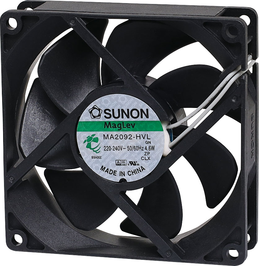 Sunon MA2092-HVL 240V AC 92mm Maglev/Vapo Bearing Cooling Fan with thermoplastic frame. Designed for long-life and minimal noise operation. Sunon® fans are manufactured to a very high standard and hold CSA and UL listings. Altronics has been a Sunon distributor for many years and have found them to be of excellent overall quality and reliability. Note: Other models are available for your specific OEM requirements, please contact us for details. About Sunon Maglev Bearing Design Sunon''s maglev bearing system provides whisper quiet operation and superior resistance to dust and debris, extending the operational lifetime of the motor.