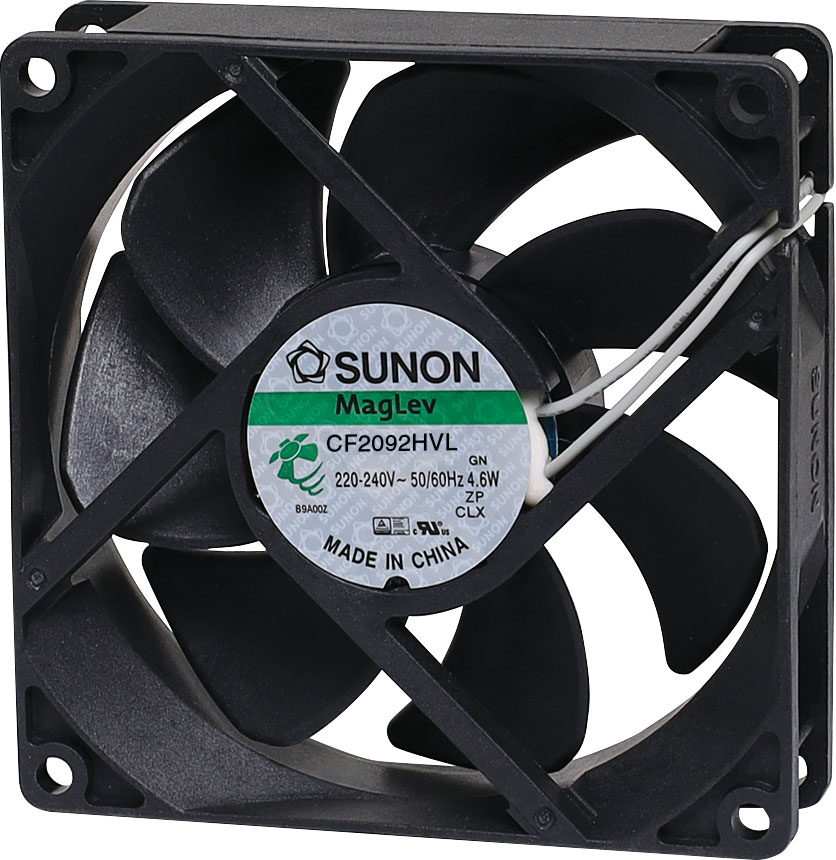 Sunon CF2092HVL-1000U-999 240V AC 92mm Maglev/Vapo Bearing Cooling Fan with thermoplastic frame. Designed for long-life and minimal noise operation. Sunon® fans are manufactured to a very high standard and hold CSA and UL listings. Altronics has been a Sunon distributor for many years and have found them to be of excellent overall quality and reliability. Note: Other models are available for your specific OEM requirements, please contact us for details. About Sunon Maglev Bearing Design Sunon''s maglev bearing system provides whisper quiet operation and superior resistance to dust and debris, extending the operational lifetime of the motor.