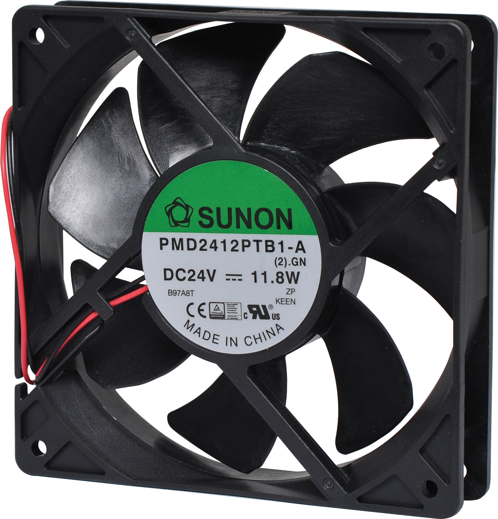 Sunon PMD2412PTB1-A (2).GN 24V DC 120mm Ball Bearing Cooling Fan with thermoplastic frame. Designed for long-life and minimal noise operation. Sunon® fans are manufactured to a very high standard and hold CSA and UL listings. Altronics has been a Sunon distributor for many years and have found them to be of excellent overall quality and reliability. Note: Other models are available for your specific OEM requirements, please contact us for details.