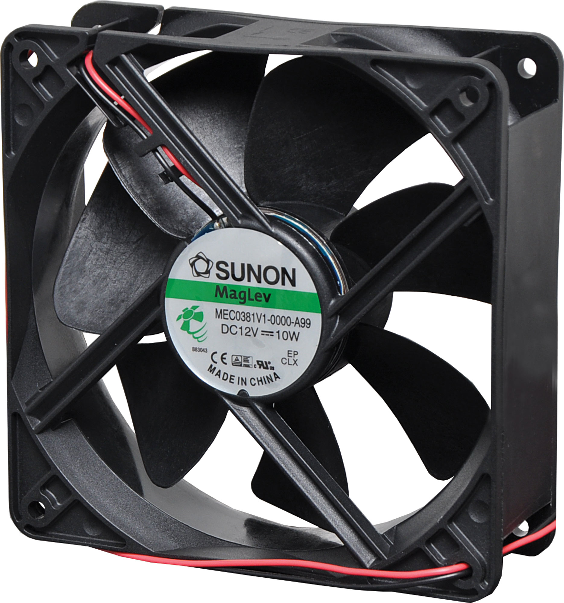 Sunon MEC0381V1-000U-A99 12V DC 120mm Maglev/Vapo Bearing Cooling Fan with thermoplastic frame. Designed for long-life and minimal noise operation. Sunon® fans are manufactured to a very high standard and hold CSA and UL listings. Altronics has been a Sunon distributor for many years and have found them to be of excellent overall quality and reliability. Note: Other models are available for your specific OEM requirements, please contact us for details. About Sunon Maglev Bearing Design Sunon''s maglev bearing system provides whisper quiet operation and superior resistance to dust and debris, extending the operational lifetime of the motor.
