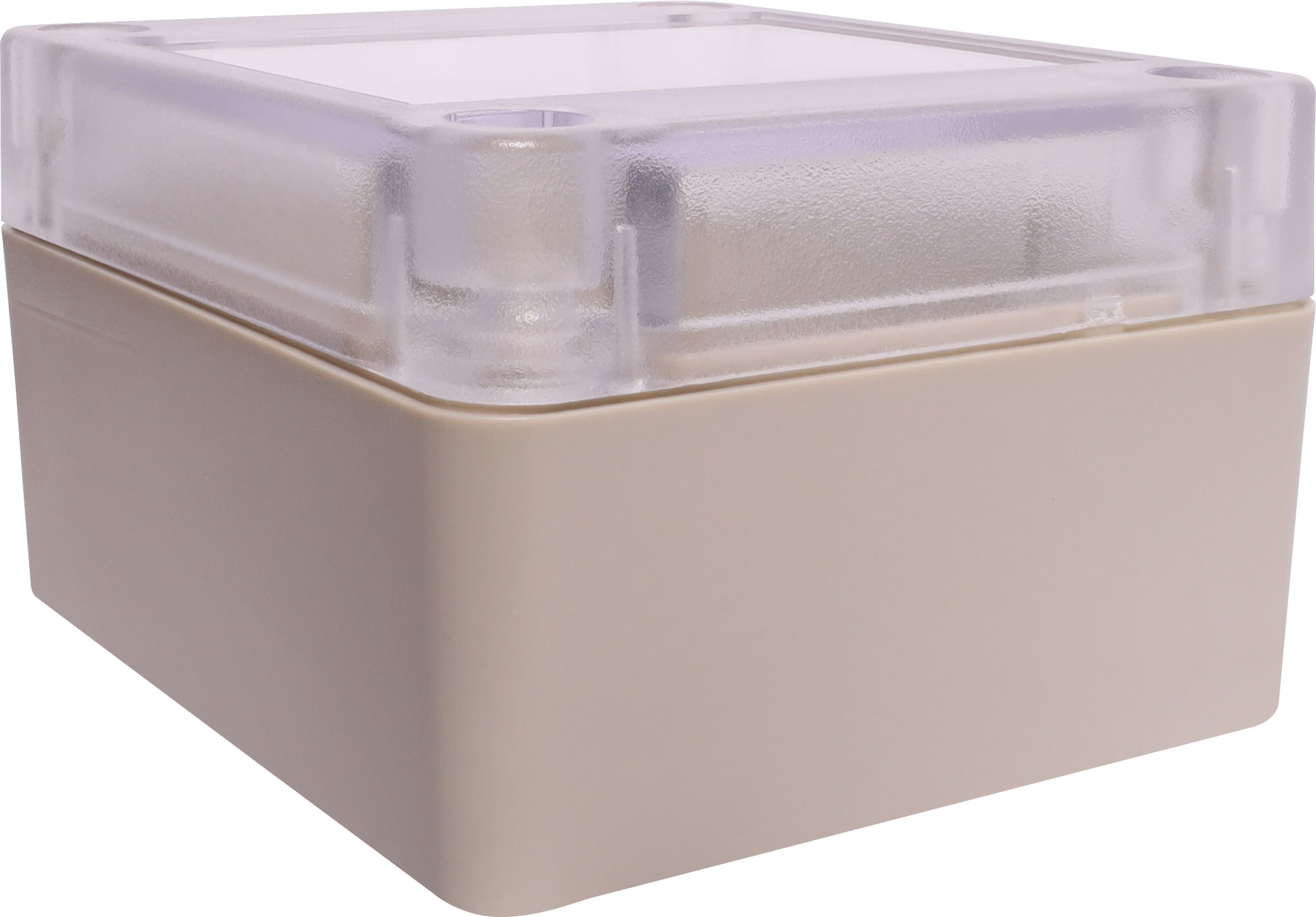 Supplied with neoprene lid sealing gasket. With the seal installed, these enclosures meet IP65 dust and hose proof standard. Supplied with a transparent lid (available with a solid grey lid, see H0300). PCB mounting points are moulded into the enclosure b