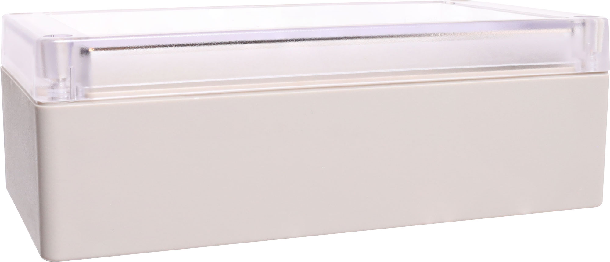 Supplied with neoprene lid sealing gasket. With the seal installed, these enclosures meet IP65 dust and hose proof standard. Supplied with a transparent lid (available with a solid grey lid, see H0306) PCB mounting points are moulded into the enclosure ba