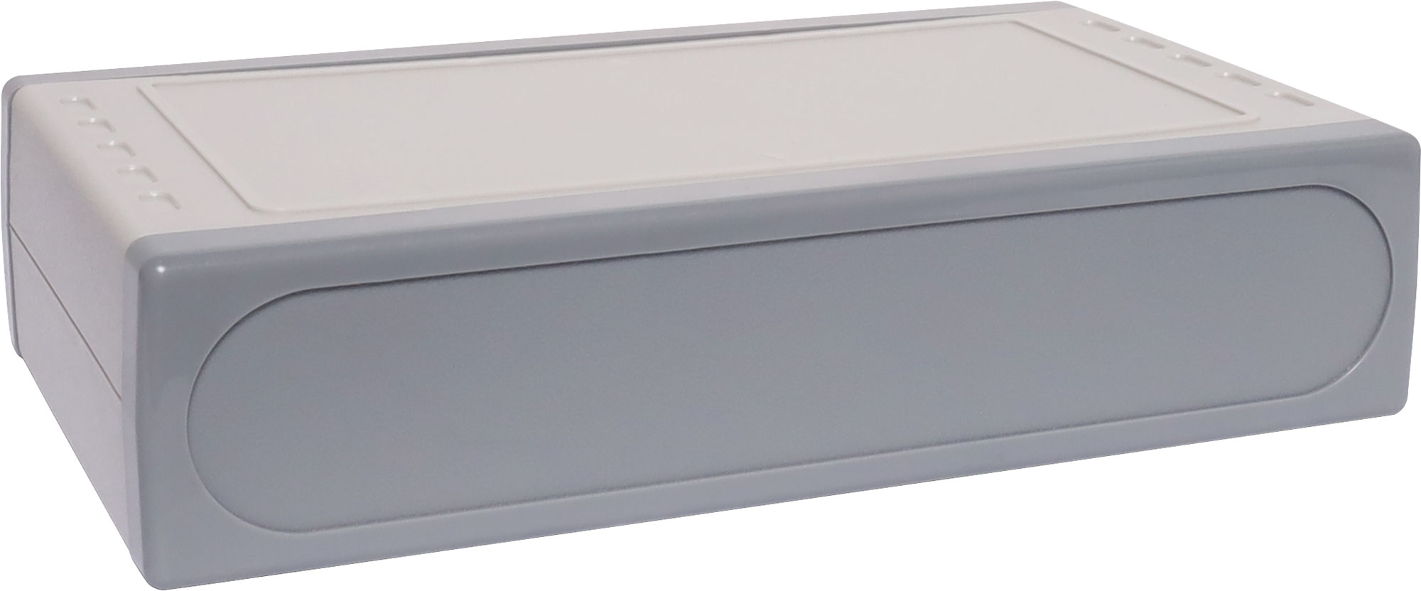 A stylish range of 4 piece snap together, low profile, instrument cases. Each case has four faces which may be customised with screen printing or lexan. Internal PCB mounting posts are provided. Suitable for both handheld or desktop use. UL 94-HB 130W