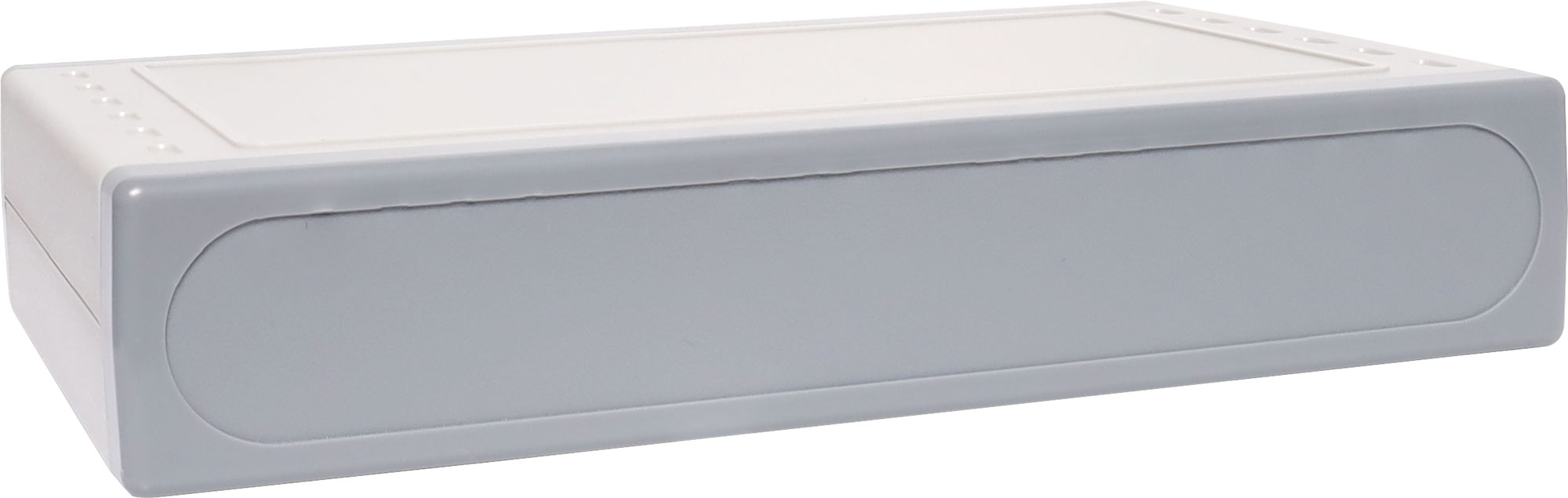 A stylish range of 4 piece snap together, low profile, instrument cases. Each case has four faces which may be customised with screen printing or lexan. Internal PCB mounting posts are provided. Suitable for both handheld or desktop use. UL 94-HB 155W x 86D x 30H