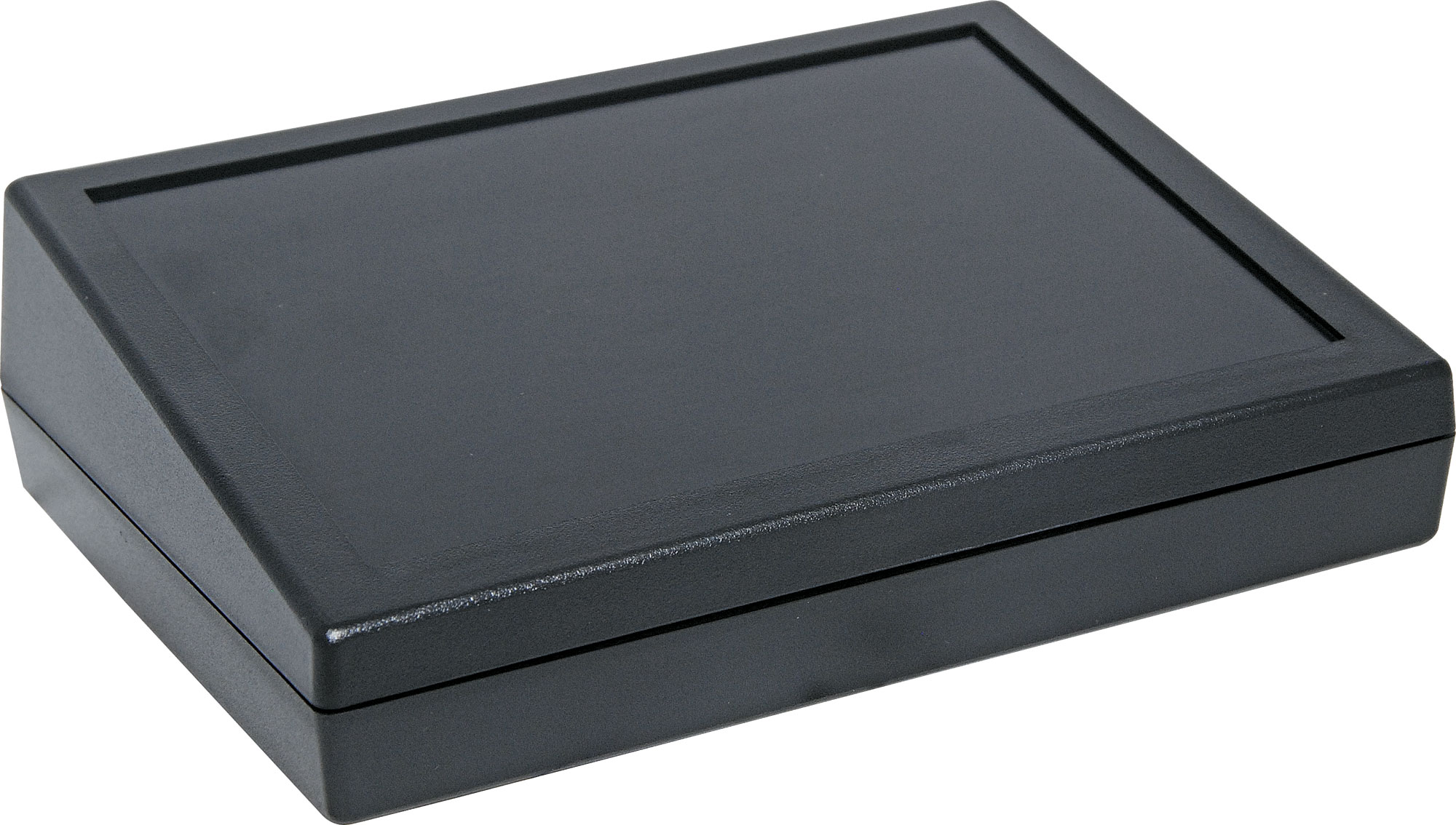 These stylish sloping front desk mount high impact ABS project enclosures are ideal for housing audio or video controllers, security systems, test equipment, control equipment, etc. They can be easily machined to suit custom applications.