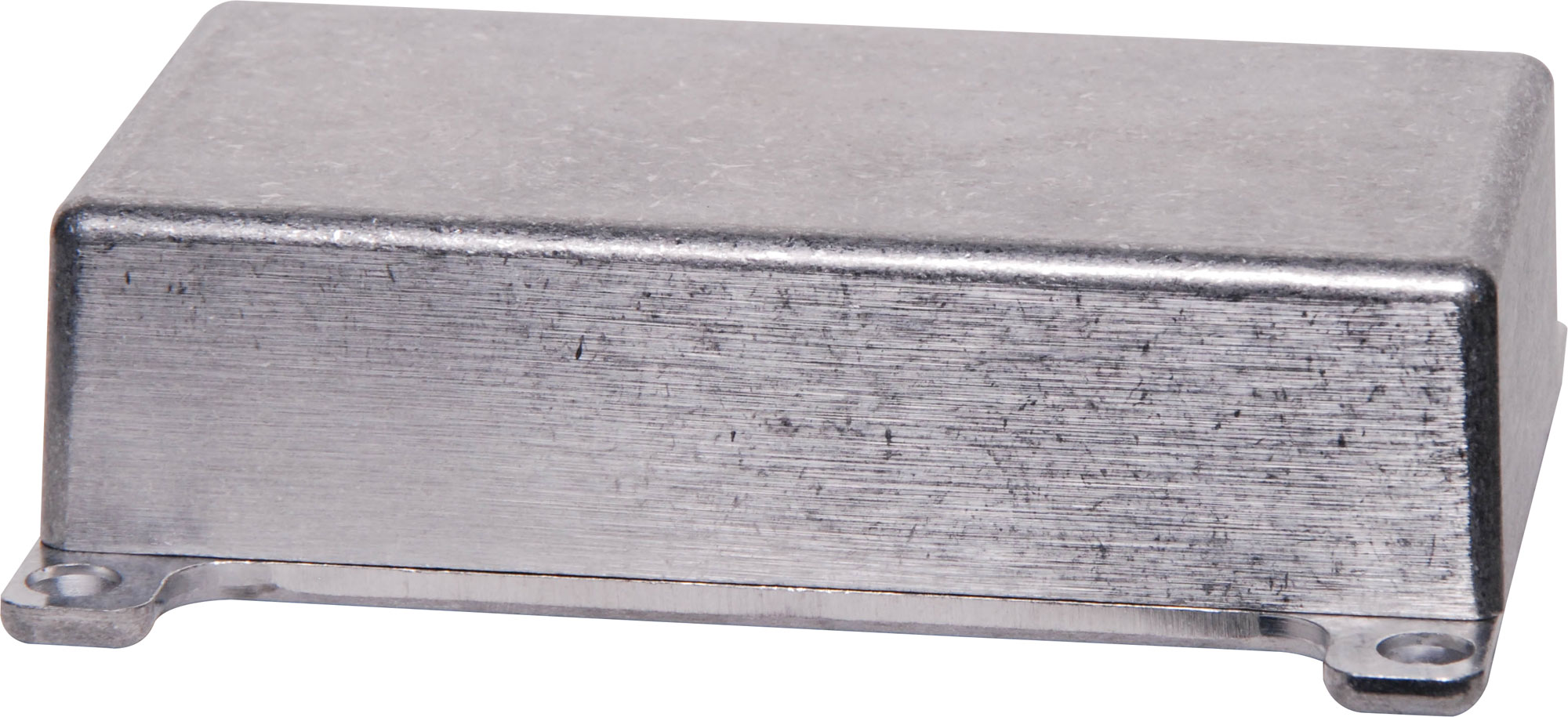 Internal dimensions: 107 x 56 x 26mm. Heavy duty die cast boxes with flanged lid for easy mounting. They offer a high degree of RFI shielding and are suitable for industrial or automotive use. Available in 6 different sizes for a multitude of applications. All flange and lid holes are countersunk.