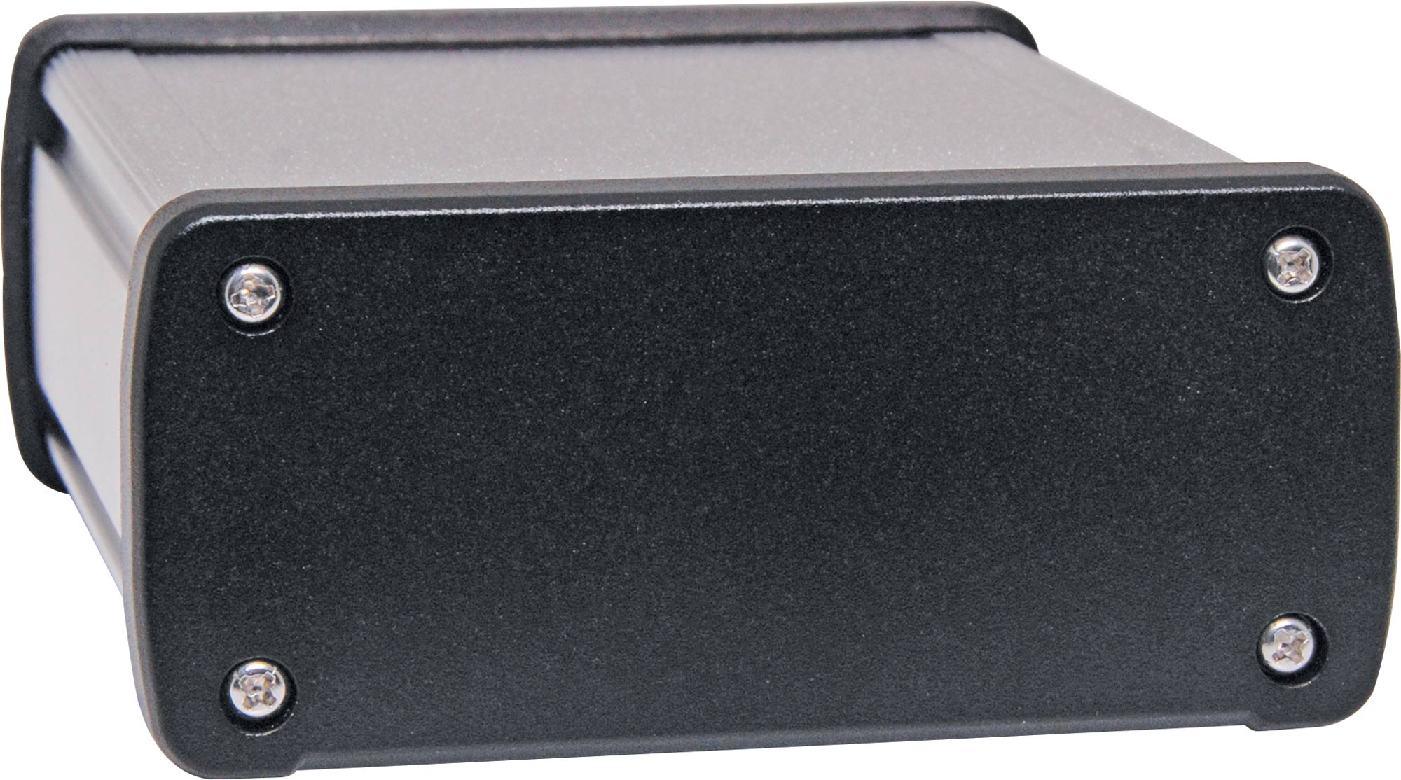 These rugged extruded silver anodised aluminium boxes are fitted with black aluminium end caps for a professional finish. Extrusion has 5 PCB internal mounting ribs. Tough single piece extruded design. Includes four rubber feet.