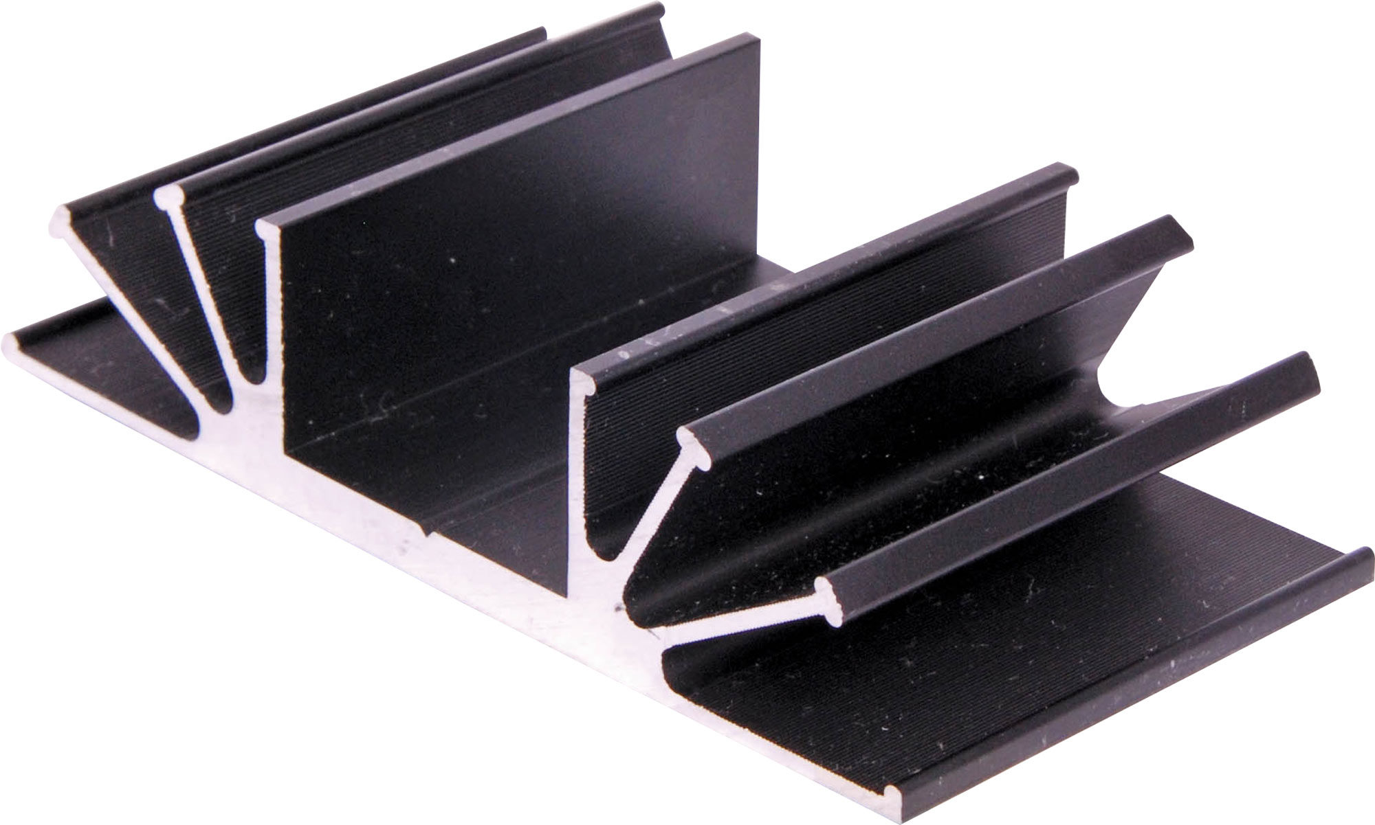 Black Anodised. Centre channel is wide enough to accept TO-3 devices. All 105W x 26H mm.
