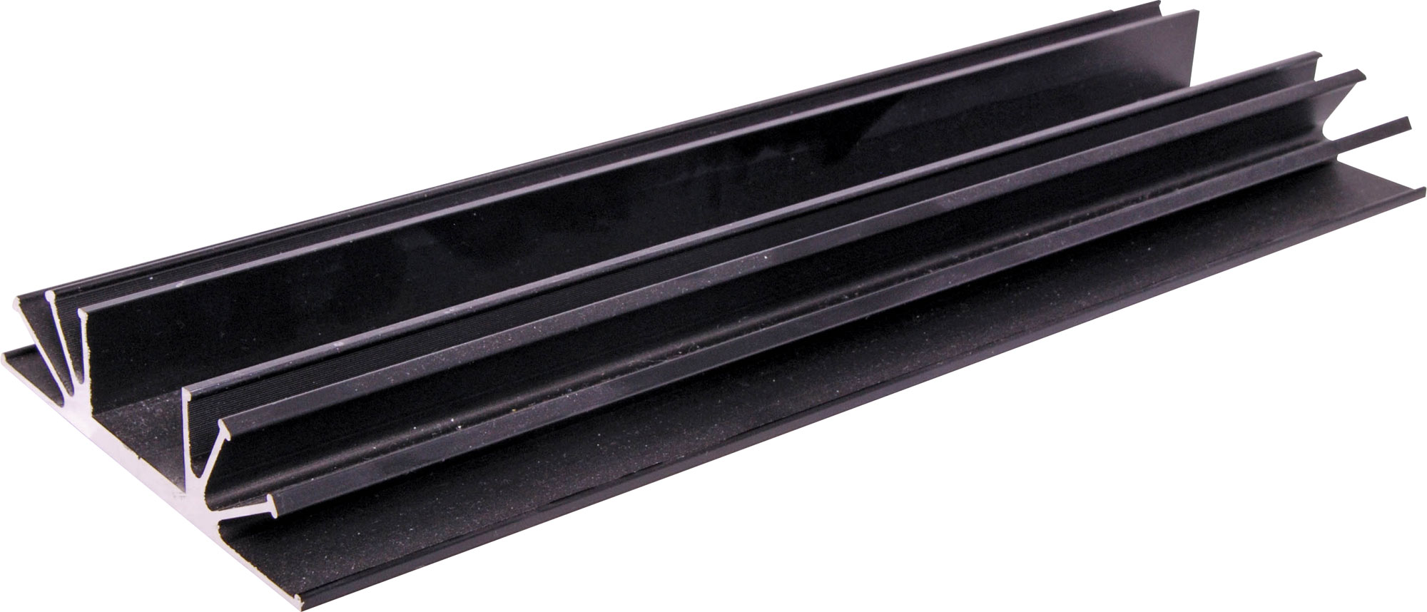 Black Anodised. Centre channel is wide enough to accept TO-3 devices. All 105W x 26H mm.