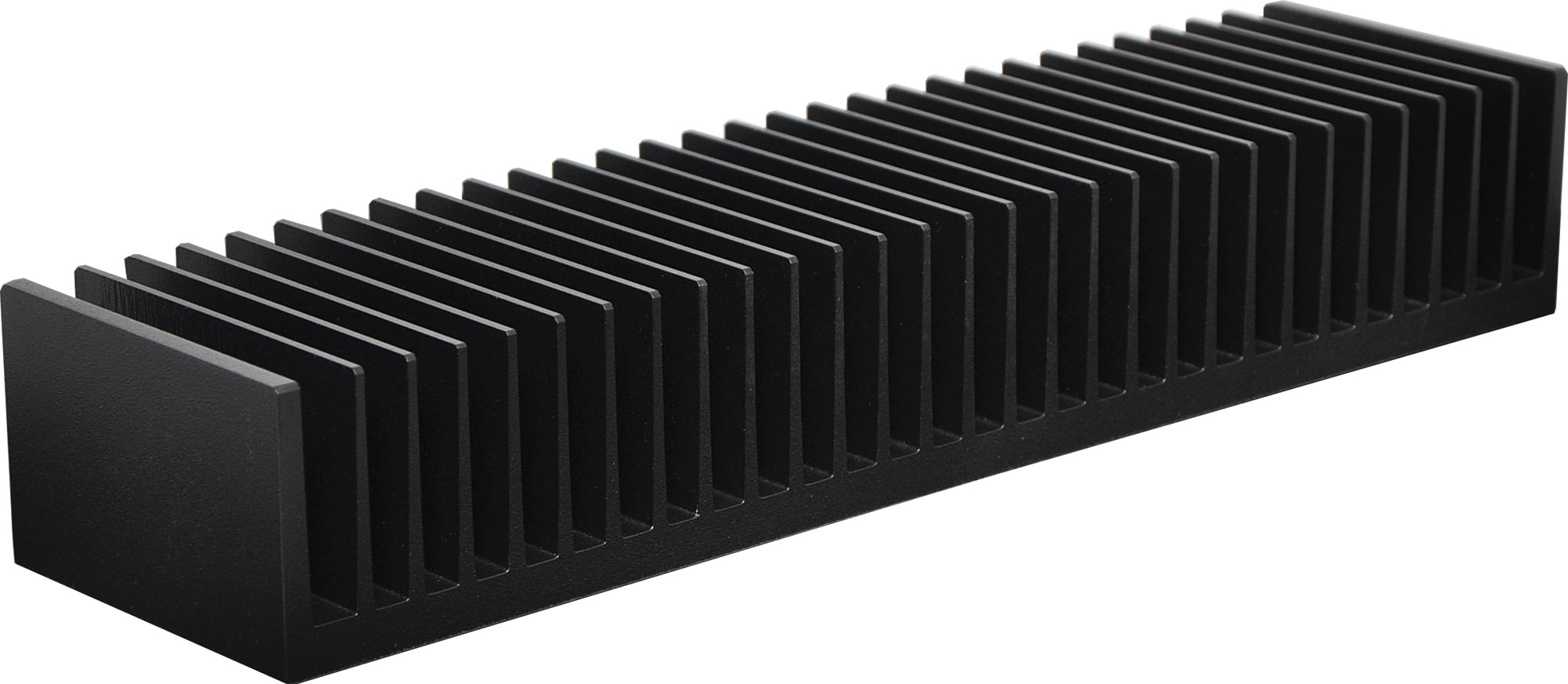 Includes machined mounting surfaces for semiconductors. H 0535, H 0538 and H 0542 have 35mm wide by 6mm flange for semis or PCB's. H 0545 has a machined flat rear surface only. Fins are matt black. H 0535, H 0538, H 0542 45D x 75H mm. (not including flang