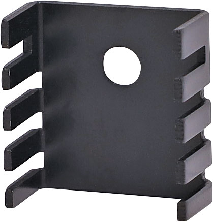 To suit TO-126 or TO-220 flat pack semis. Thermal resistance: 28°C/W. Dimensions: 19W x 19L x 9.5H