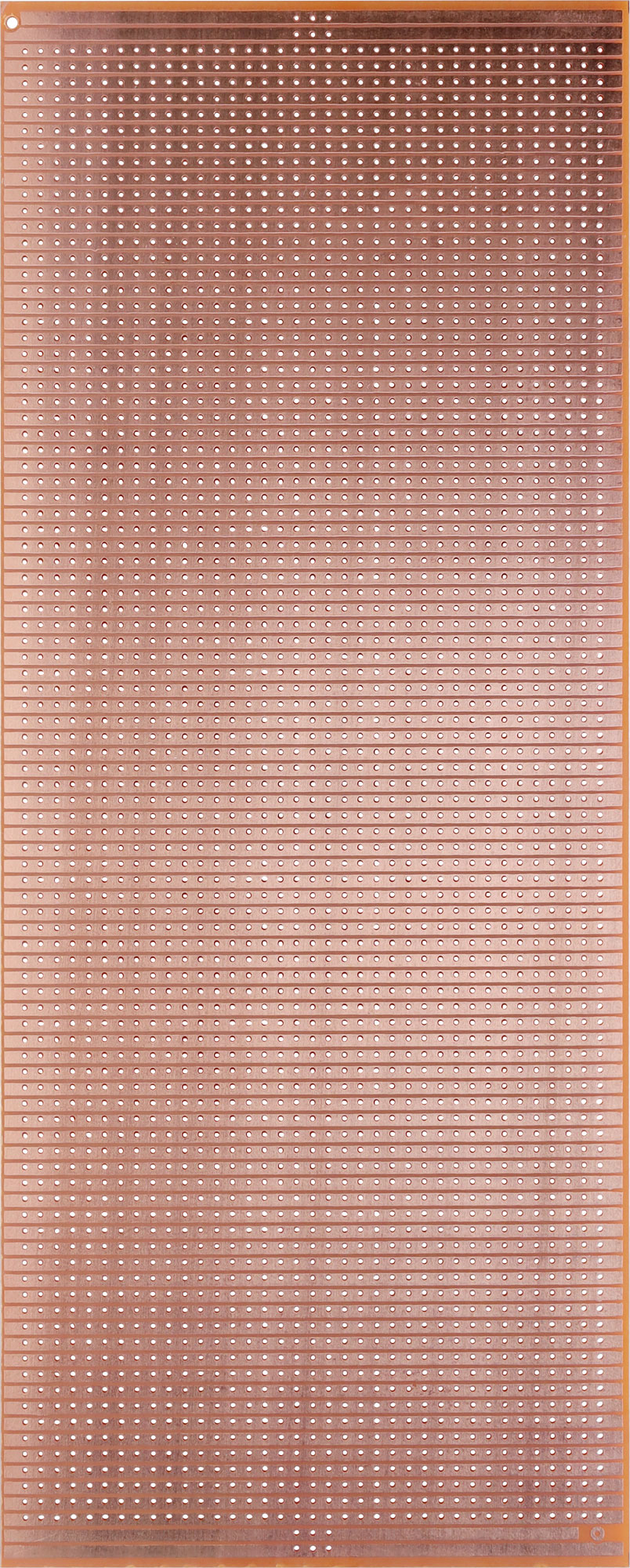 Pre-drilled copper strip board. 0.9mm holes, on average a 2.54mm spacing (0.1inch). Dimensions: 100 x 250mm