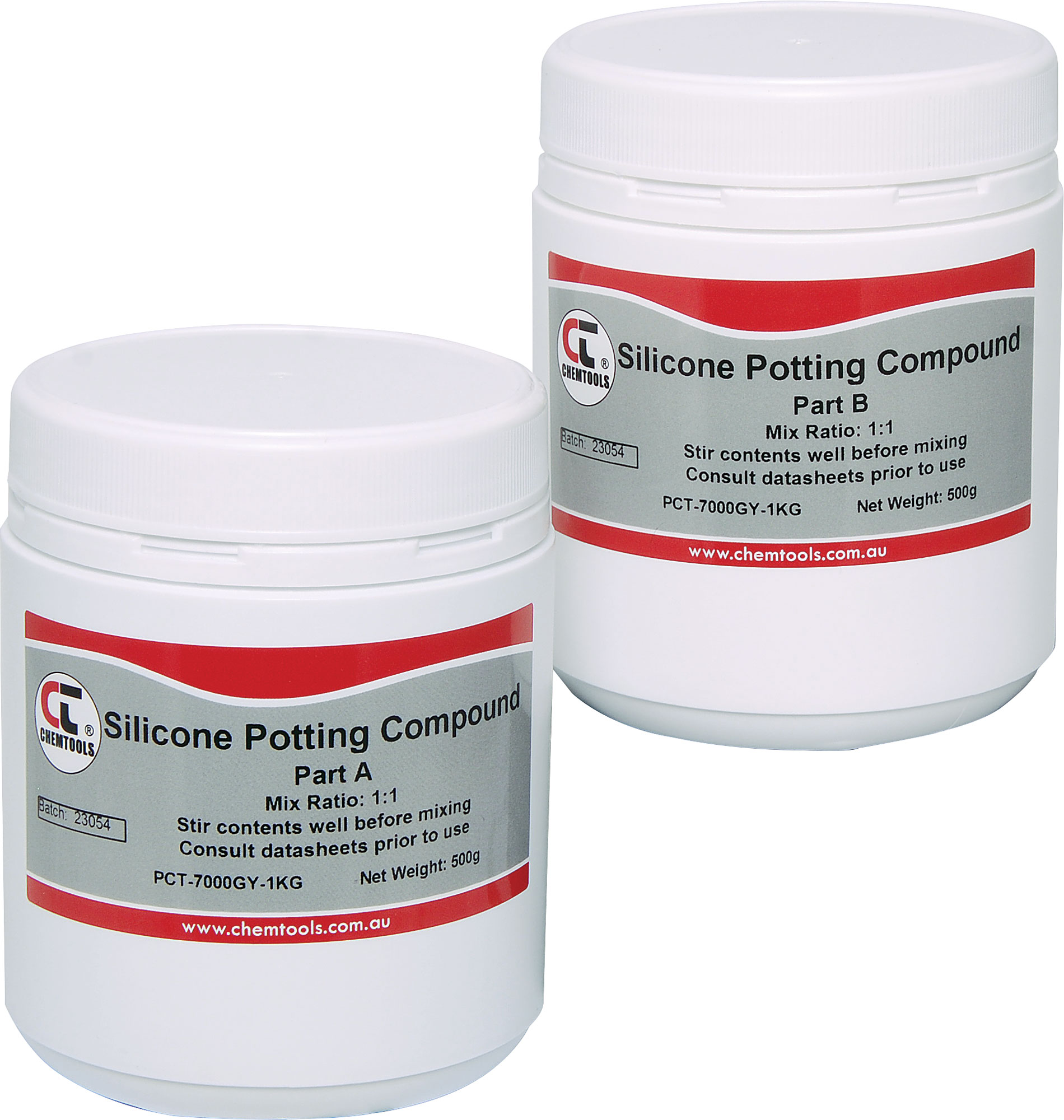 Chemtools high quality two component Silicone Potting Compound is specially formulated for potting applications in the Electrical and Electronics industry. Chemtools PCT-7000Y potting compounds offer good protection against impact damage and because of the relatively low viscosities, will allow complete encapsulation for weather and humidity resistance. The products are easily mixed in a simple 1:1 ratio.