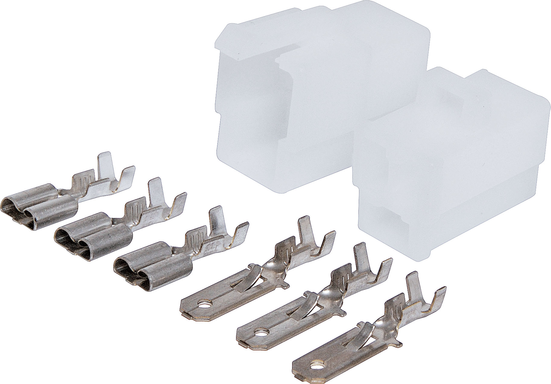 A positive locking latch automatically engages at mating for the single circuit connector. the standard connector used in fusible links. The tin plated crimp contacts, are easily snapped into the housings by hand. Applicable terminal wire range is 1.3 to